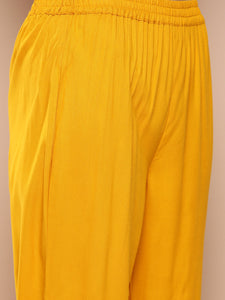 Placeholder Mustard Organza Sleeve Kurta Set With Mustard Bushy Tie- Dye Dupatta - InWeave
