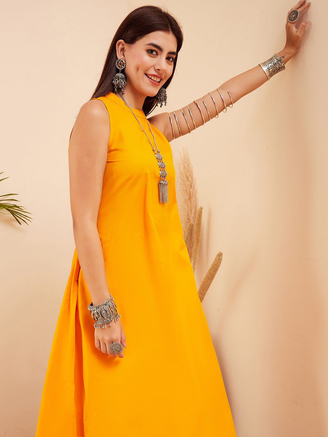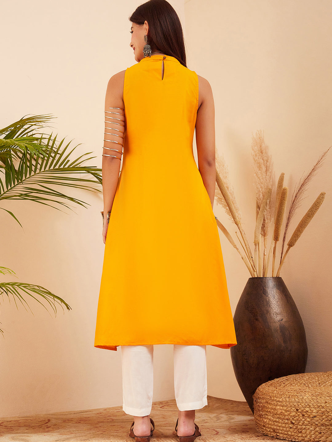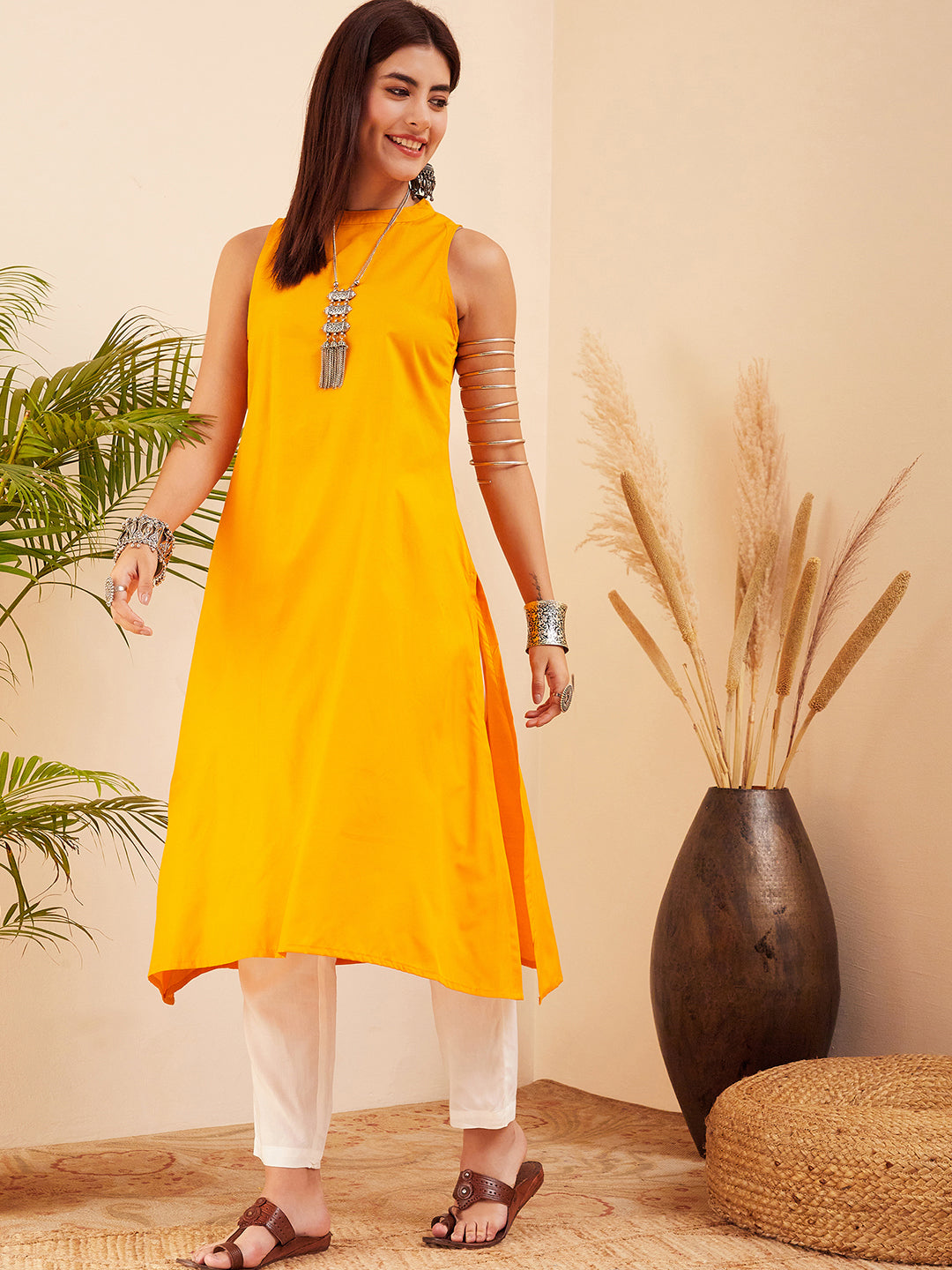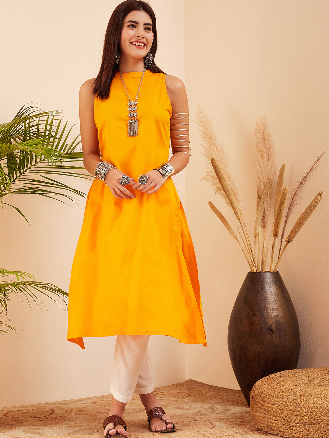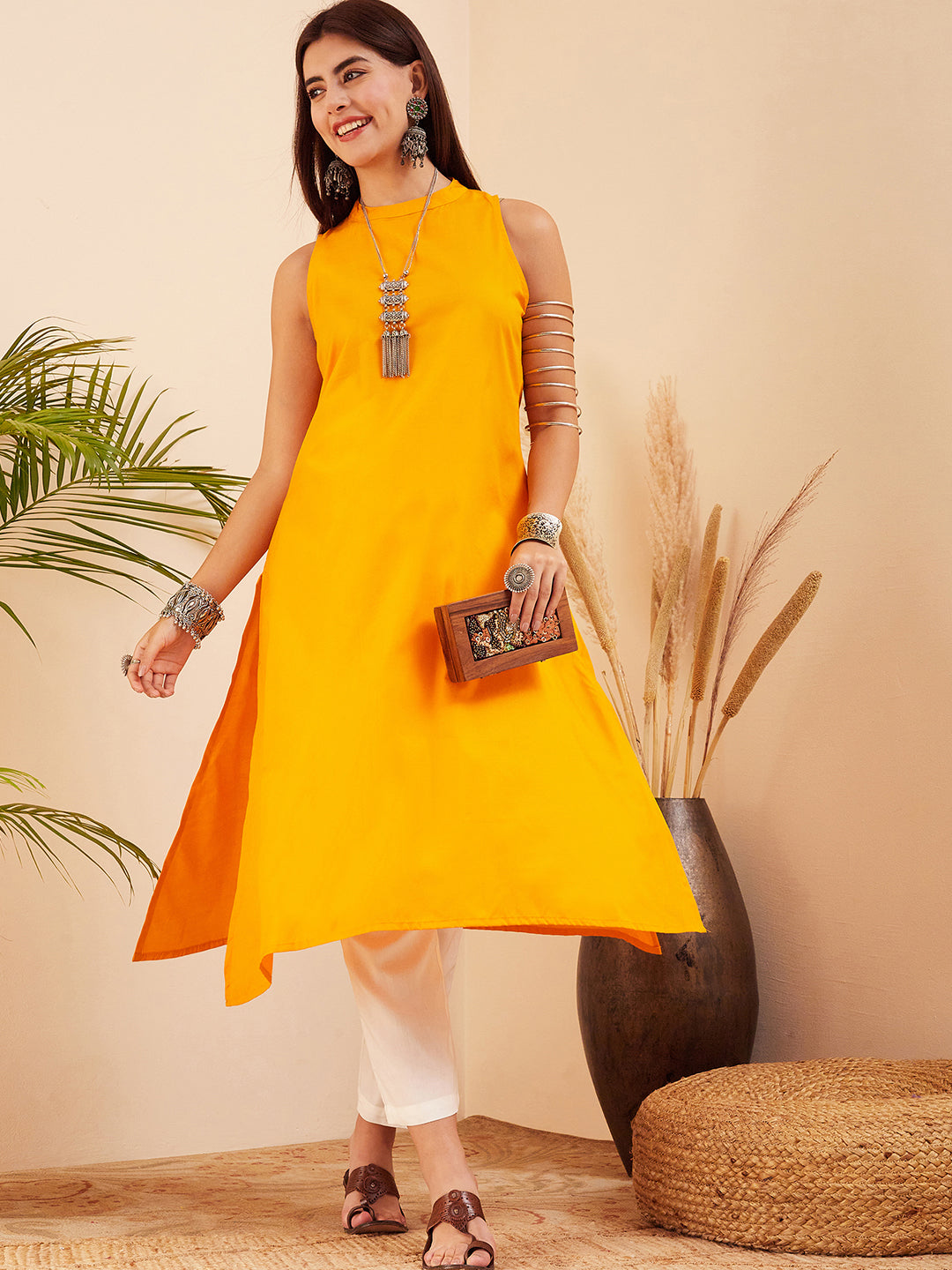 The Kurta is crafted from best of Indian fabrics. Style it with Oxidised jewelery and juttis and you are good to go for any outing Hand Wash Only Seperately.