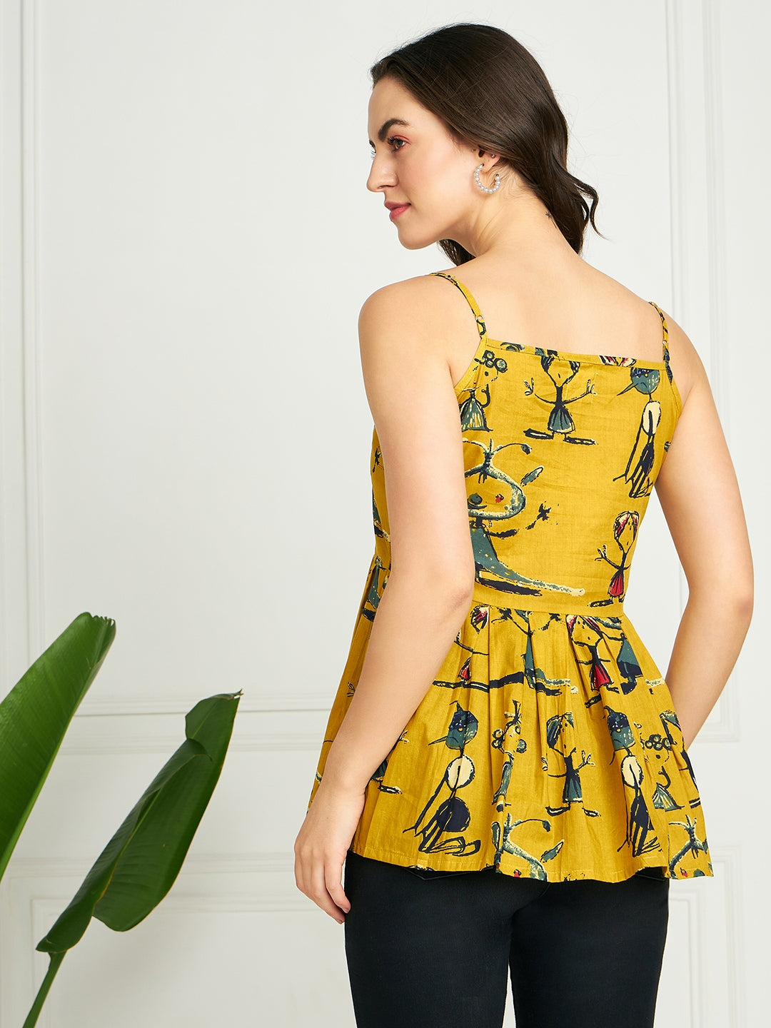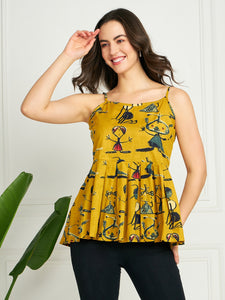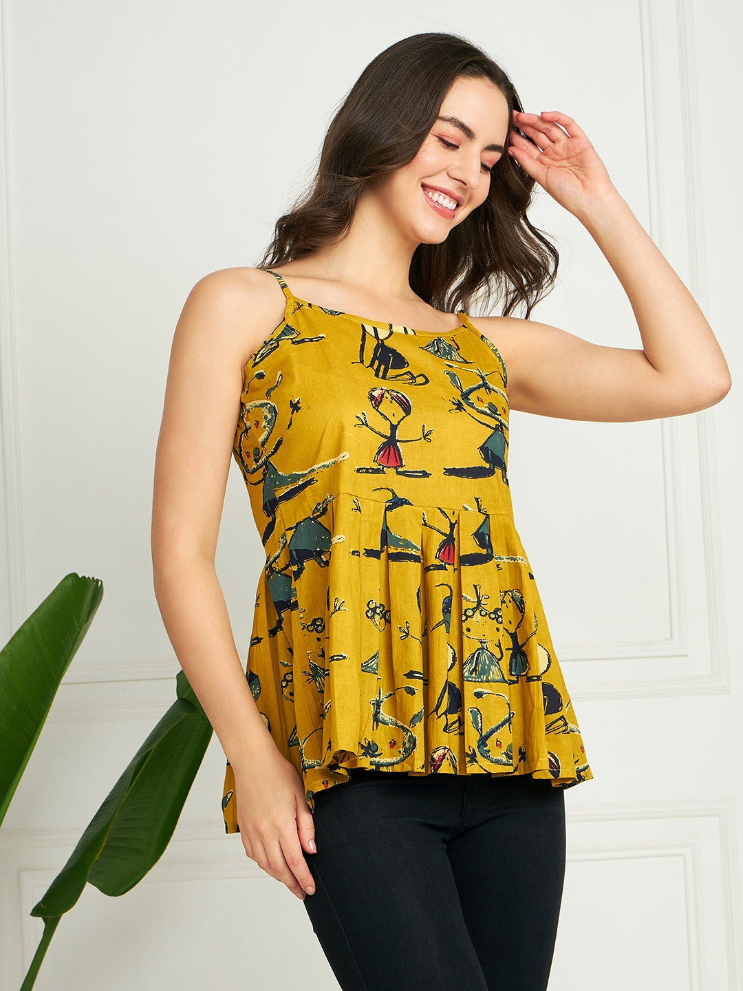 Shine like a bright star by wearing this yellow coloured arrow printed top from InWeave. This blouse features boat neck, quarter sleeves and comfy fit.