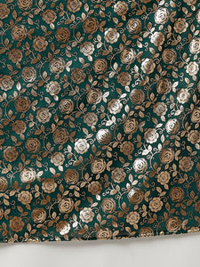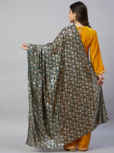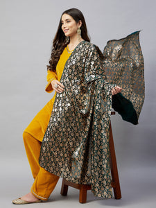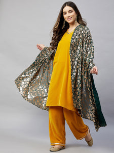 Mustard Velvet Kurta Set With Green Rose Georgette Dupatta