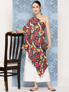 Placeholder Navy Bird Japanese Art Oneshoulder Top - InWeave
