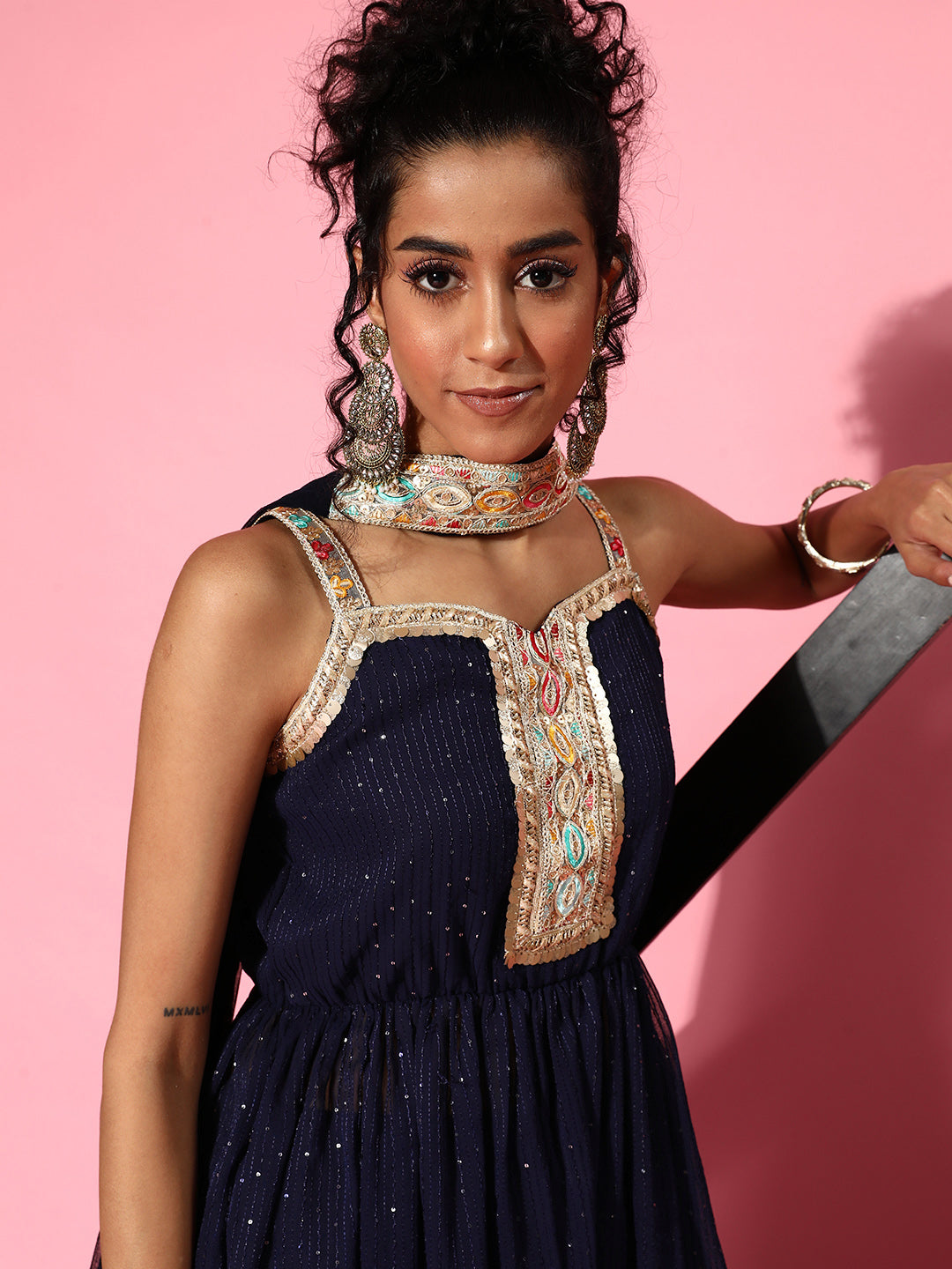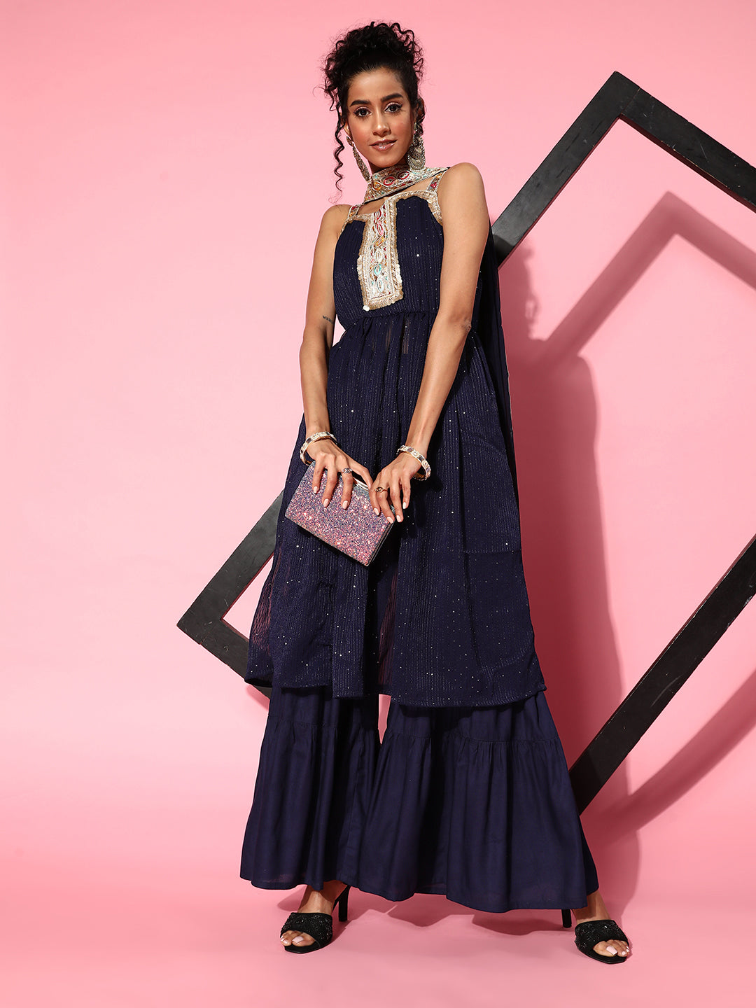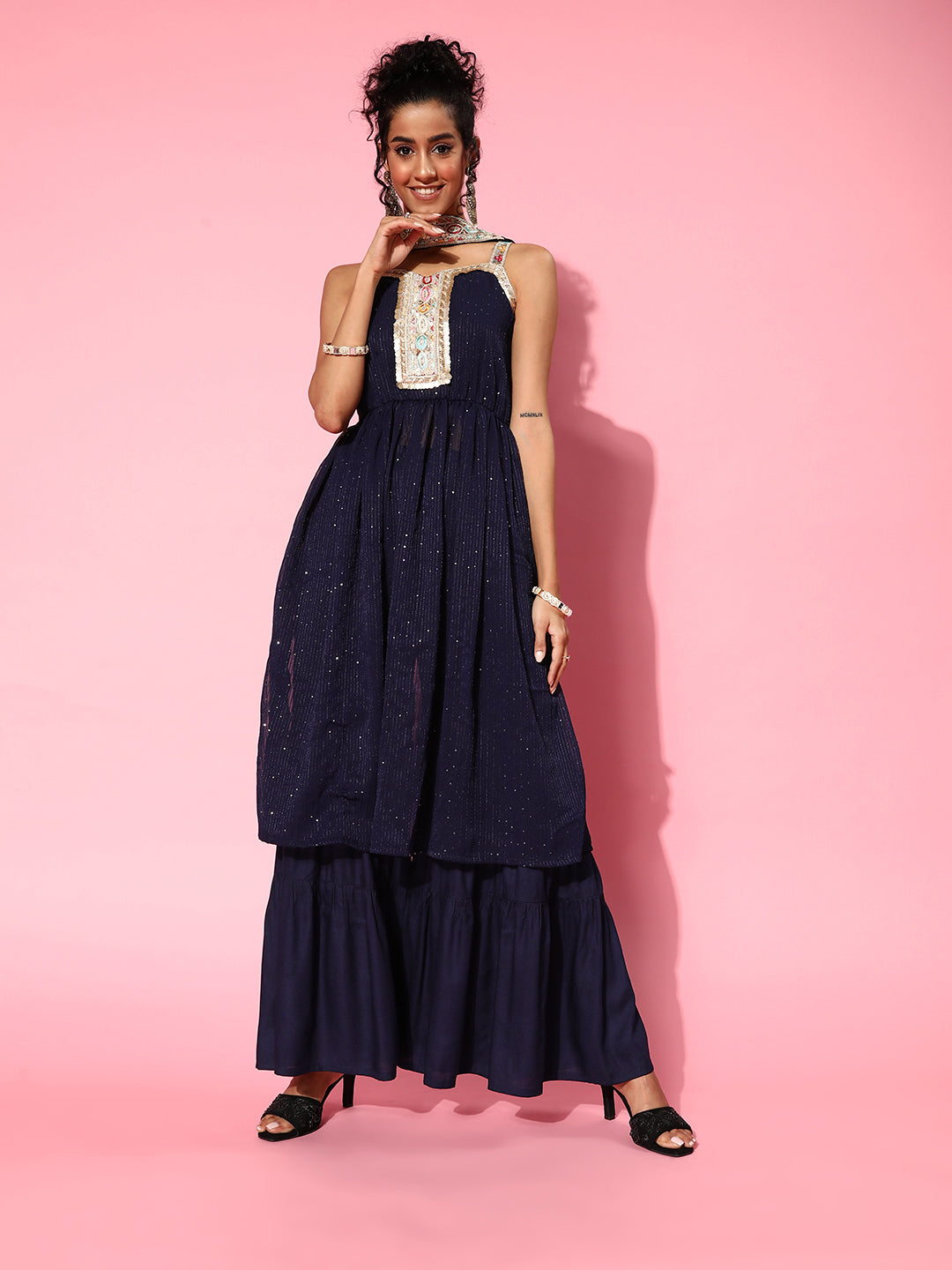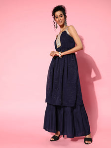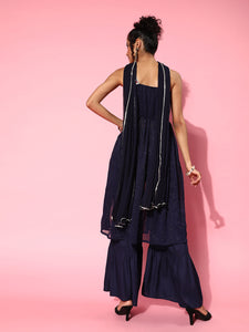 The Set is crafted from best of Indian fabrics. Style it with Oxidised jewelery and juttis and you are good to go for any outing Hand Wash Only Seperately.