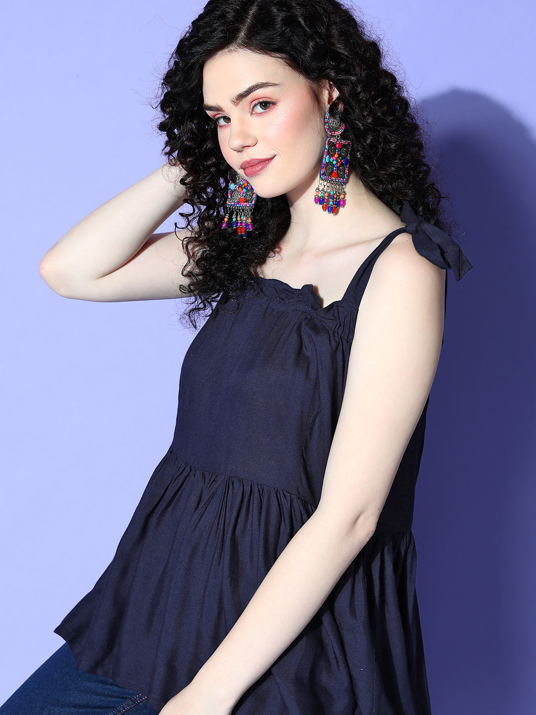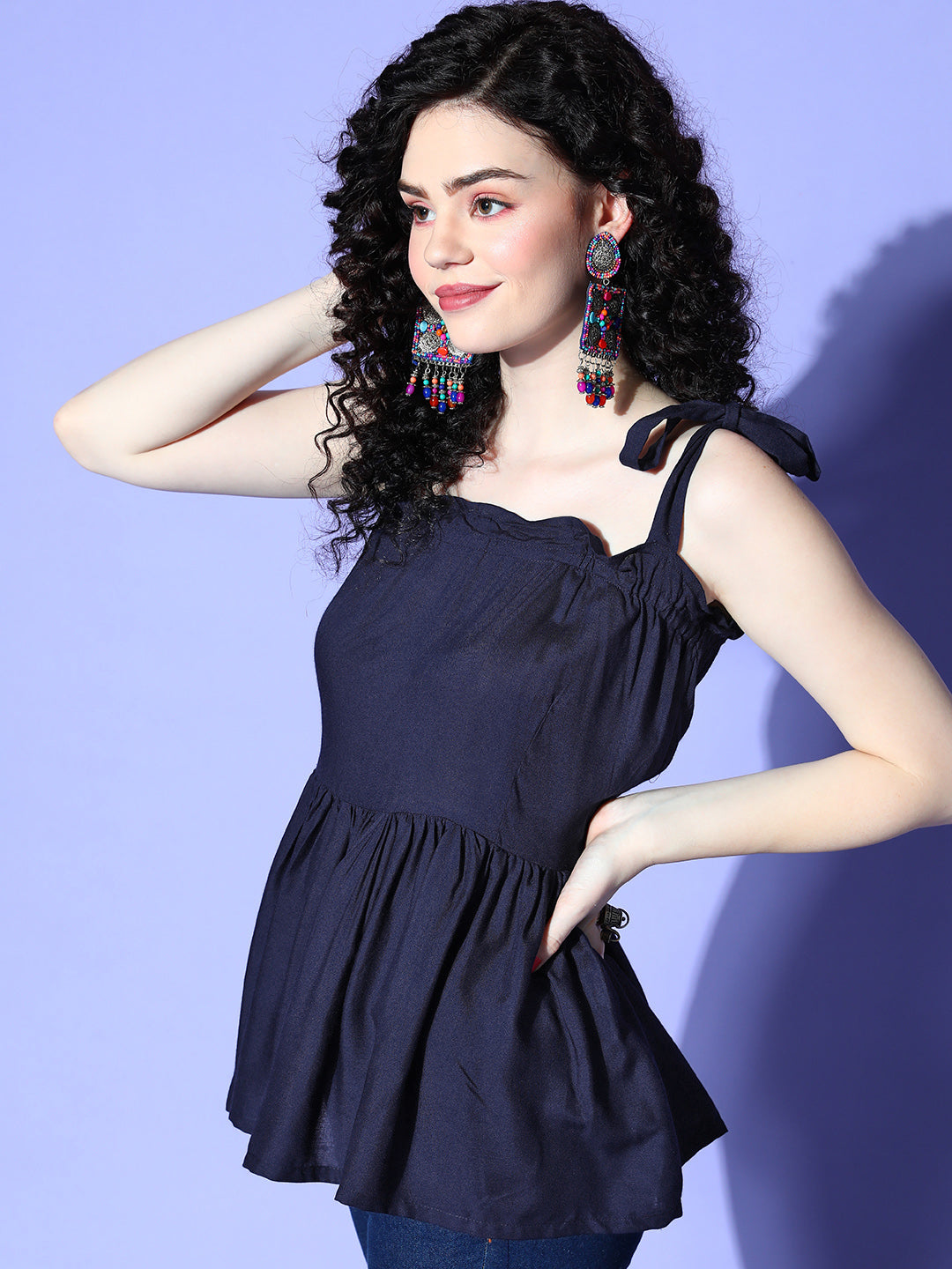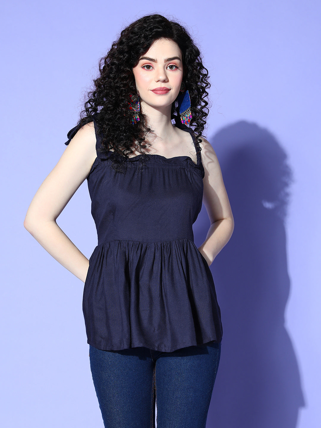 Smart and stylish, this top will make for a great addition to your closet. Featuring an attractive Solid pattern and Shoulder tie up, this top is sure to emphasize your overall appeal.
