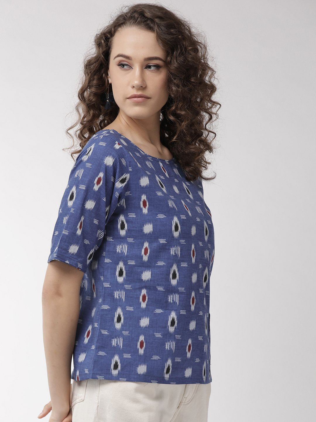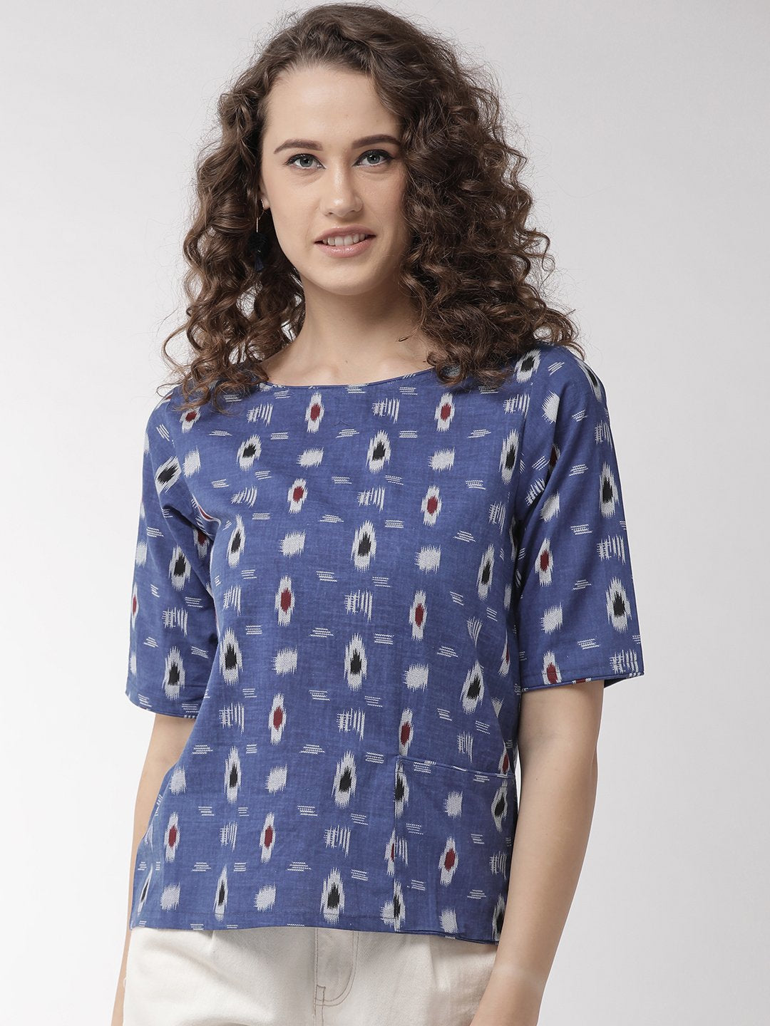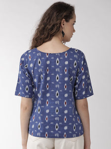 Showcase your comfort quotient with this navy blue top from the house of InWeave. Club it with gray jeans, loafers and carry folded clutch.