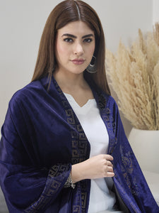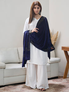 Classic and timeless, the navy blue velvet shawl adds depth and sophistication to your outfit. A wardrobe essential for colder days.
