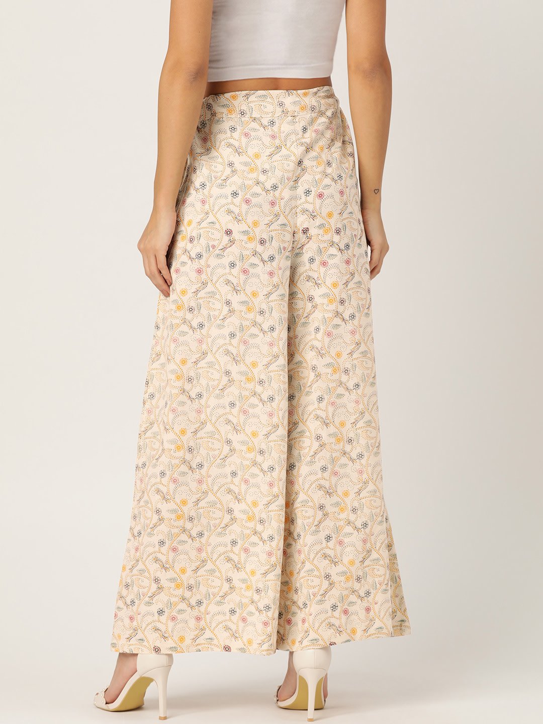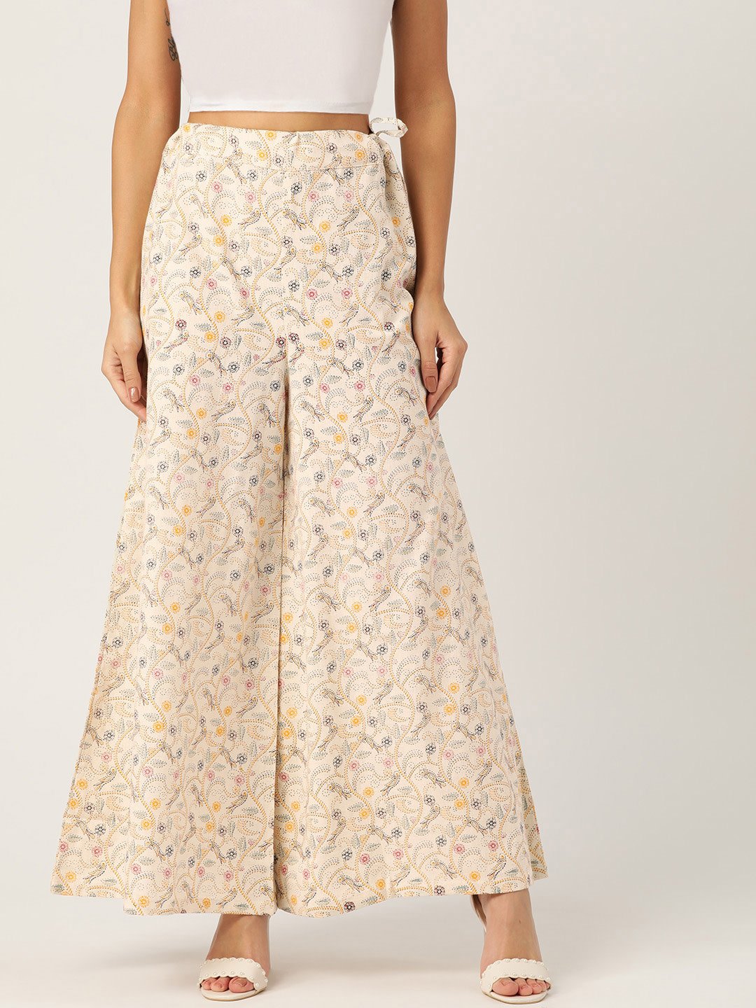 Bring on your love for ethnic wears with this pair of off white kantha printed palazzos. Wear this bird printed palazzos with short tunics and sandals.