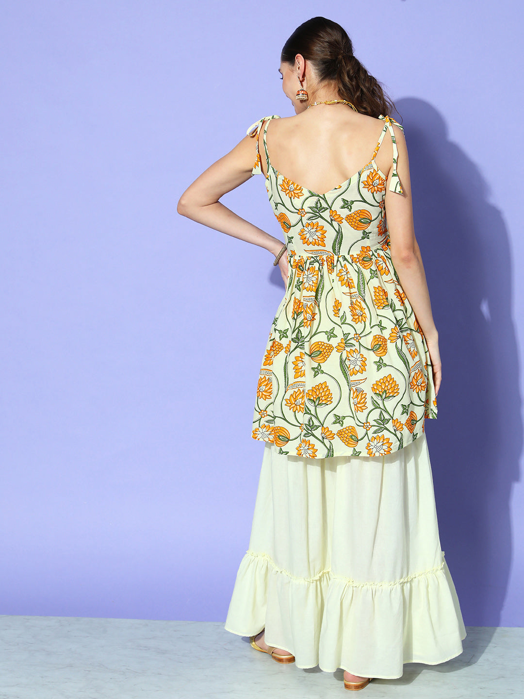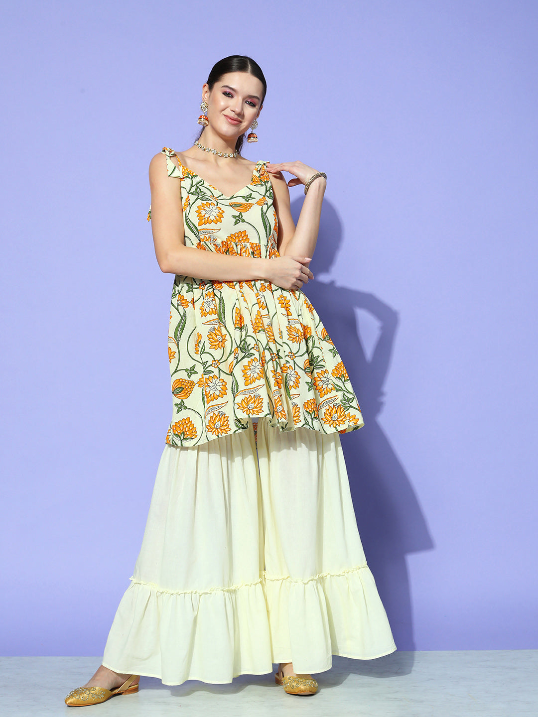 The Set is crafted from best of Indian fabrics. Style it with Oxidised jewelery and juttis and you are good to go for any outing Hand Wash Only Seperately.