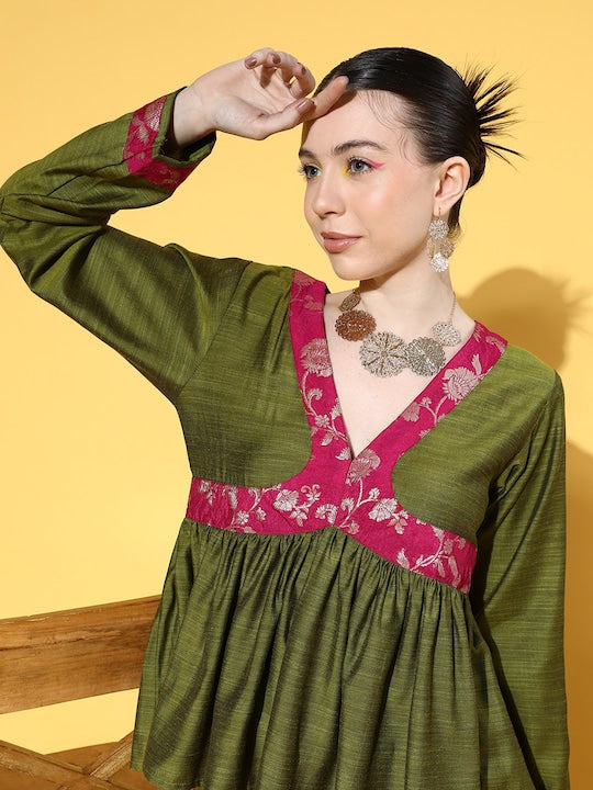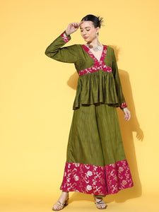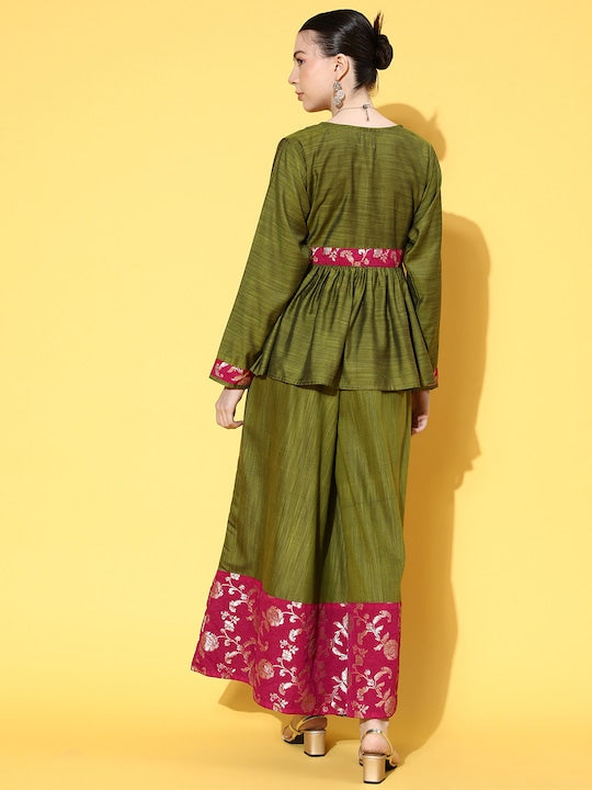The Kurta Set is crafted from best of Indian fabrics. Style it with Oxidised jewelery and a sleek pair of shoes and you are good to go for any outing Hand Wash Only Seperately.