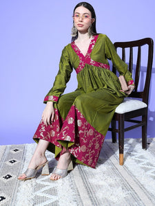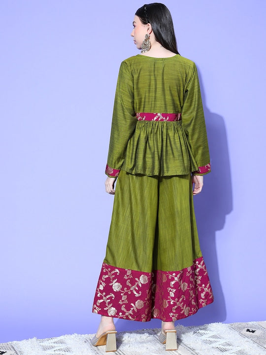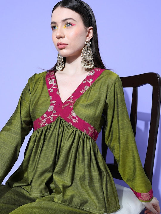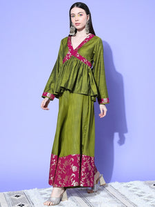 The Top Bottom Set is crafted from best of Indian fabrics. Style it with Oxidised jewelery and a sleek pair of shoes and you are good to go for any outing Hand Wash Only Seperately.