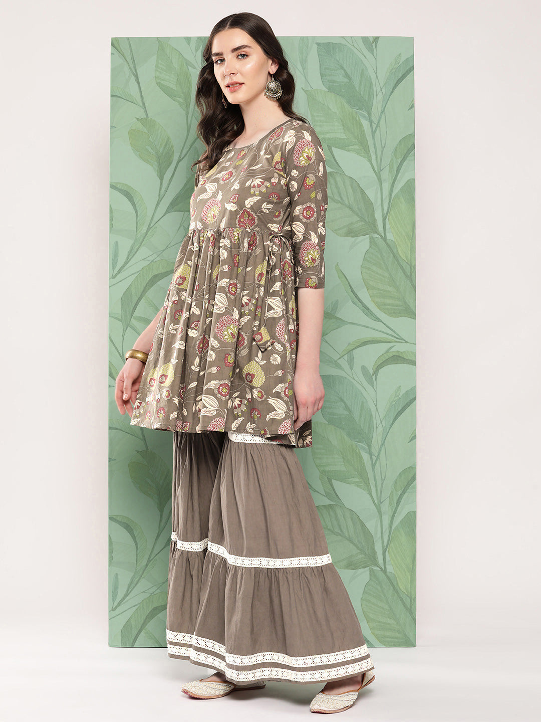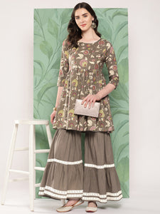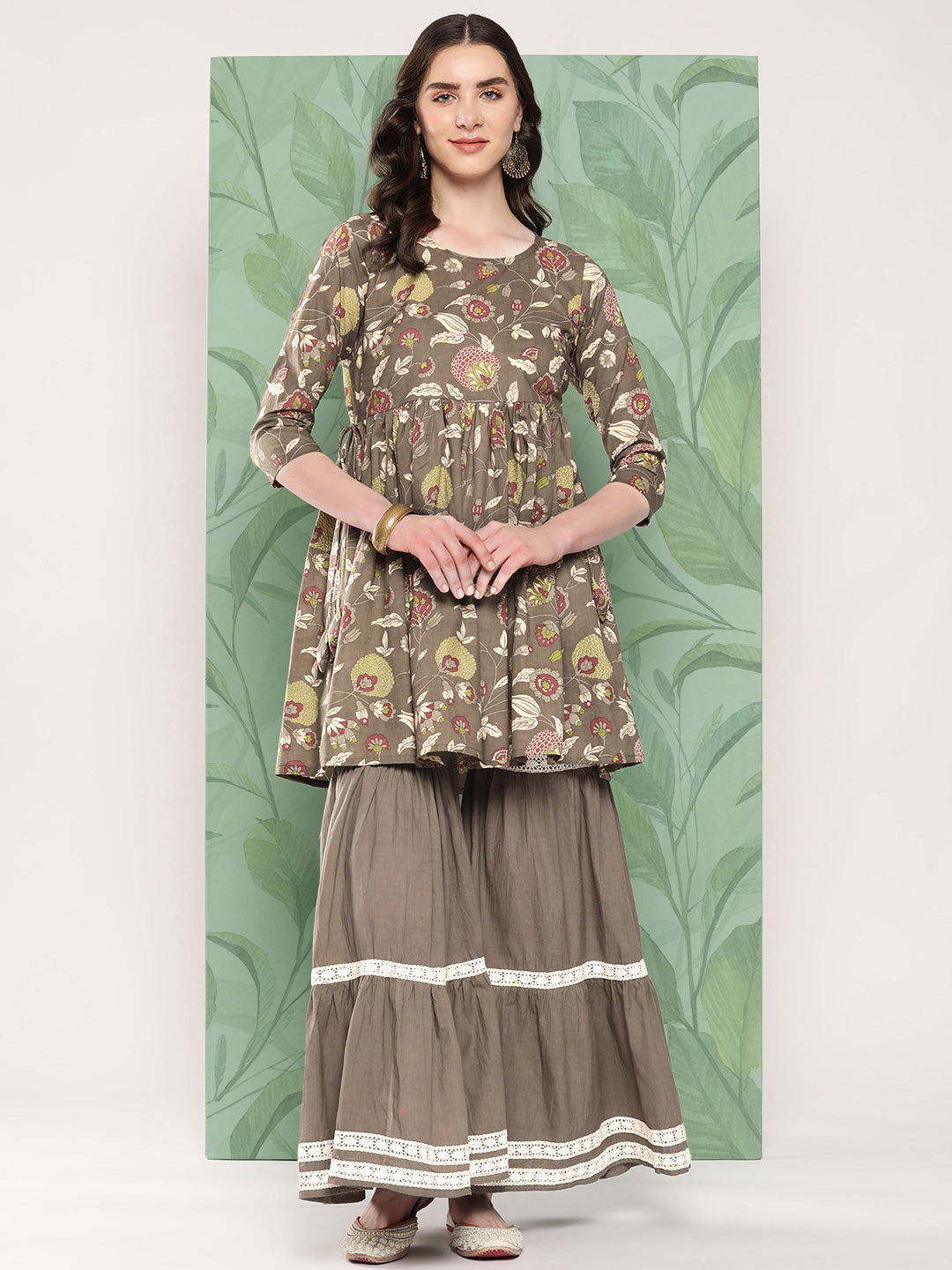 The Set is crafted from best of Indian fabrics. Style it with Oxidised jewelery and juttis and you are good to go for any outing Hand Wash Only Seperately. Fabric used : Cotton