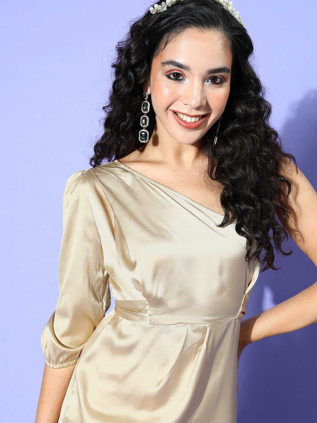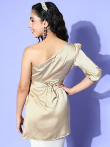 Slip into this gorgeous top and glam up for an outing in no time. The solid pattern and one-shoulder design of this beautiful top lend you the desired look.
