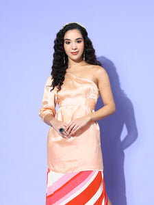 Slip into this gorgeous top and glam up for an outing in no time. The solid pattern and one-shoulder design of this beautiful top lend you the desired look.