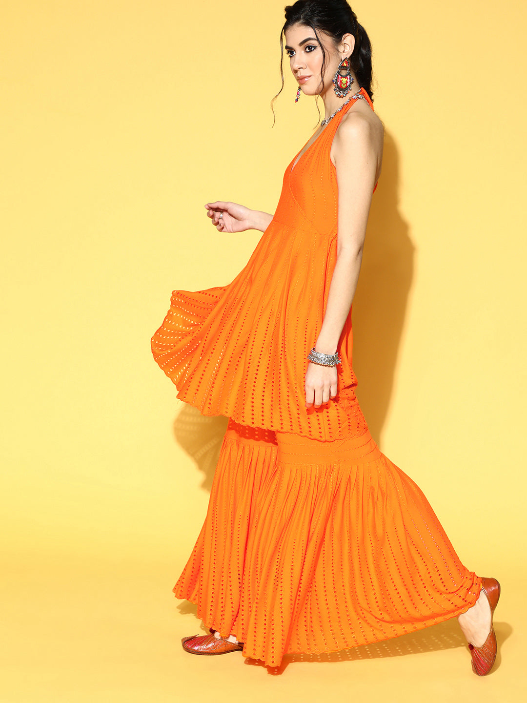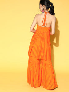 Orange Backless Kurta Sharara Set