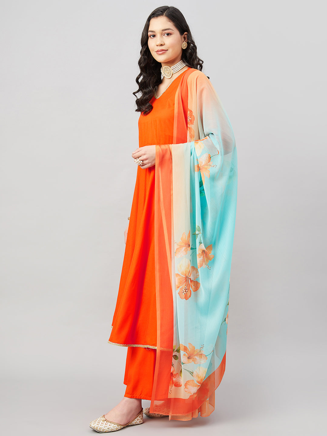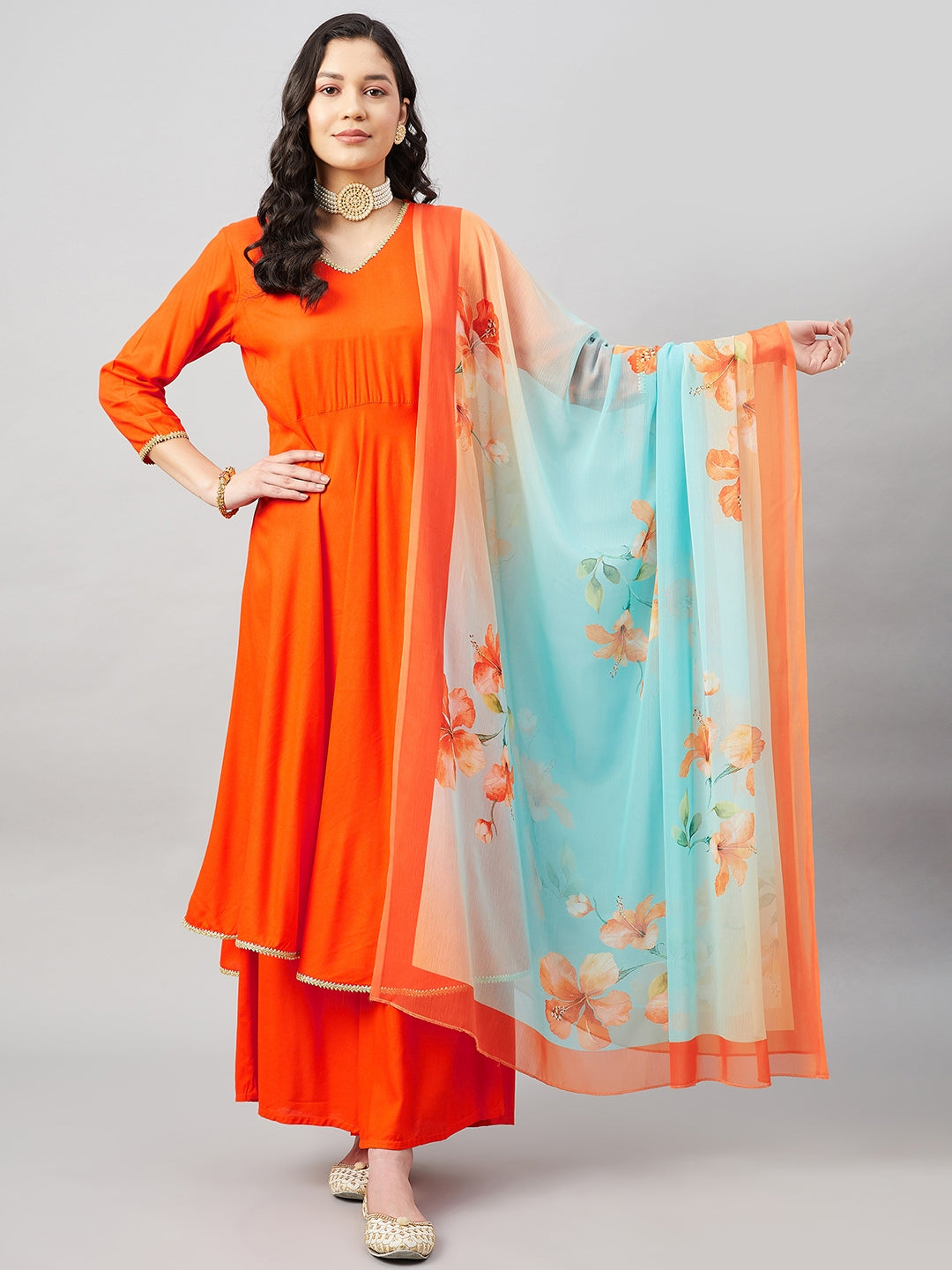 Dupatta, if any, has a length of 225 cms / 2.25 m / 88.5 inches. Width is 107 cms / 42 inches