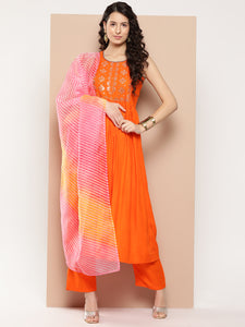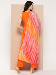 The Set is crafted from best of Indian fabrics. Style it with Oxidised jewelery and juttis and you are good to go for any outing Hand Wash Only Seperately.