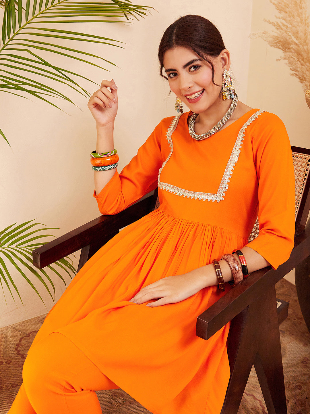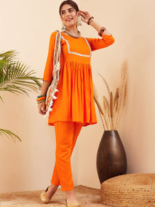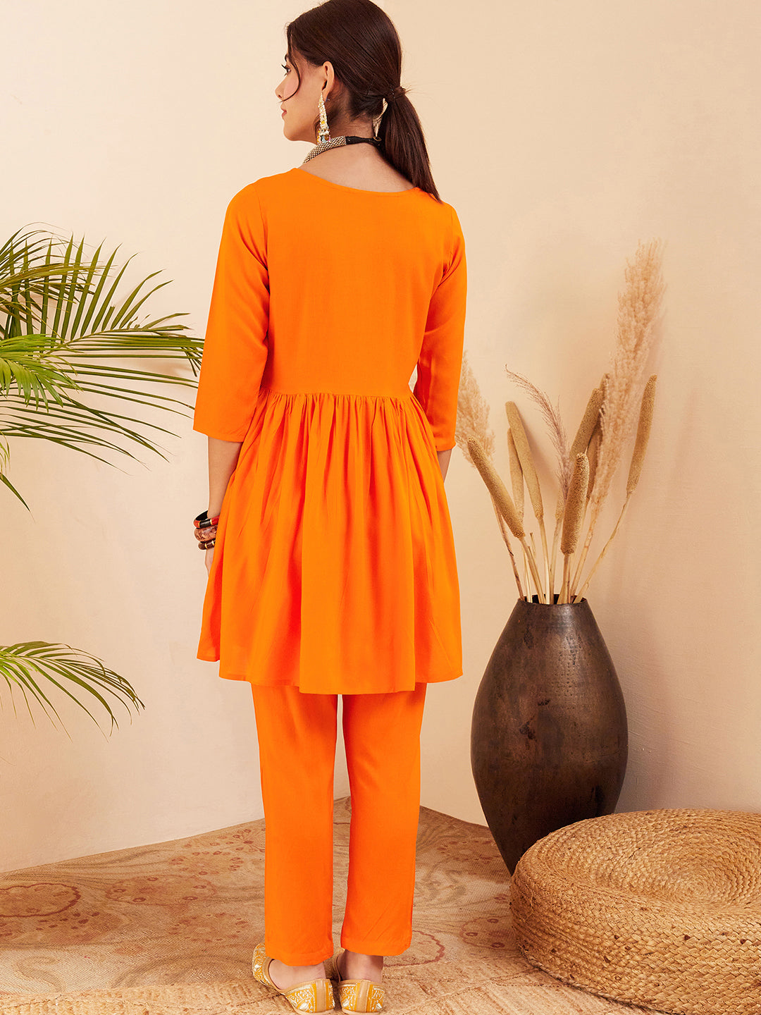 The Top Bottom Set is crafted from best of Indian fabrics. Style it with Oxidised jewelery and a sleek pair of shoes and you are good to go for any outing Hand Wash Only Seperately.