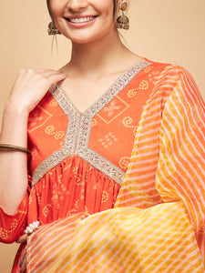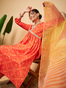 The Set is crafted from best of Indian fabrics. Style it with Oxidised jewelery and juttis and you are good to go for any outing Hand Wash Only Seperately.