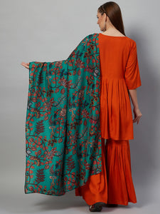 The Set is crafted from best of Indian fabrics. Style it with Oxidised jewelery and juttis and you are good to go for any outing Hand Wash Only Seperately.