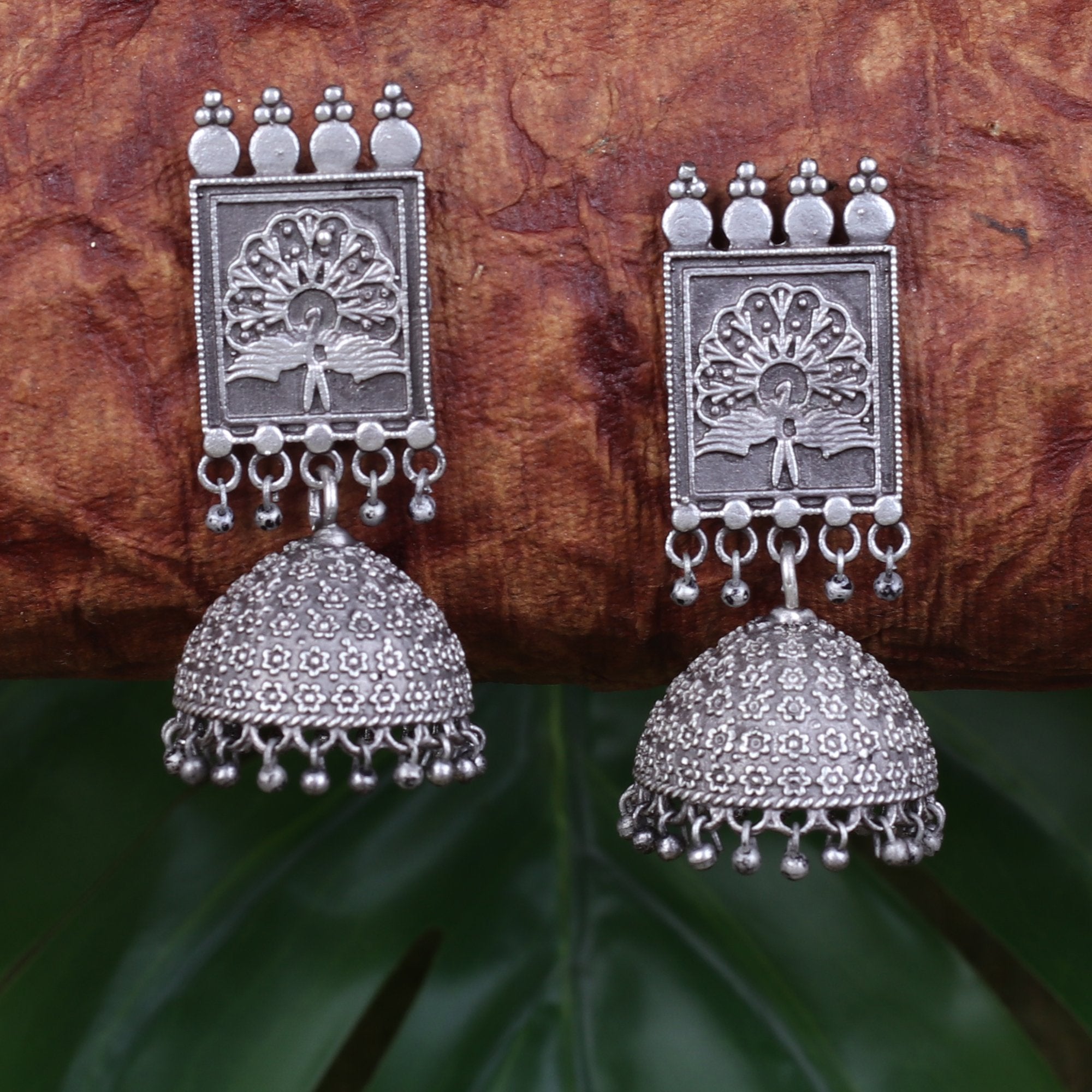 Add an elegant note to your occasion wear ensembles with these exquisite statement earrings. Handcrafted in german silver and with oxidized silver plating, these delicate and light weight stunners pair well with your Kurtas, Sarees or even add a pop of color to your white shirt & denim look