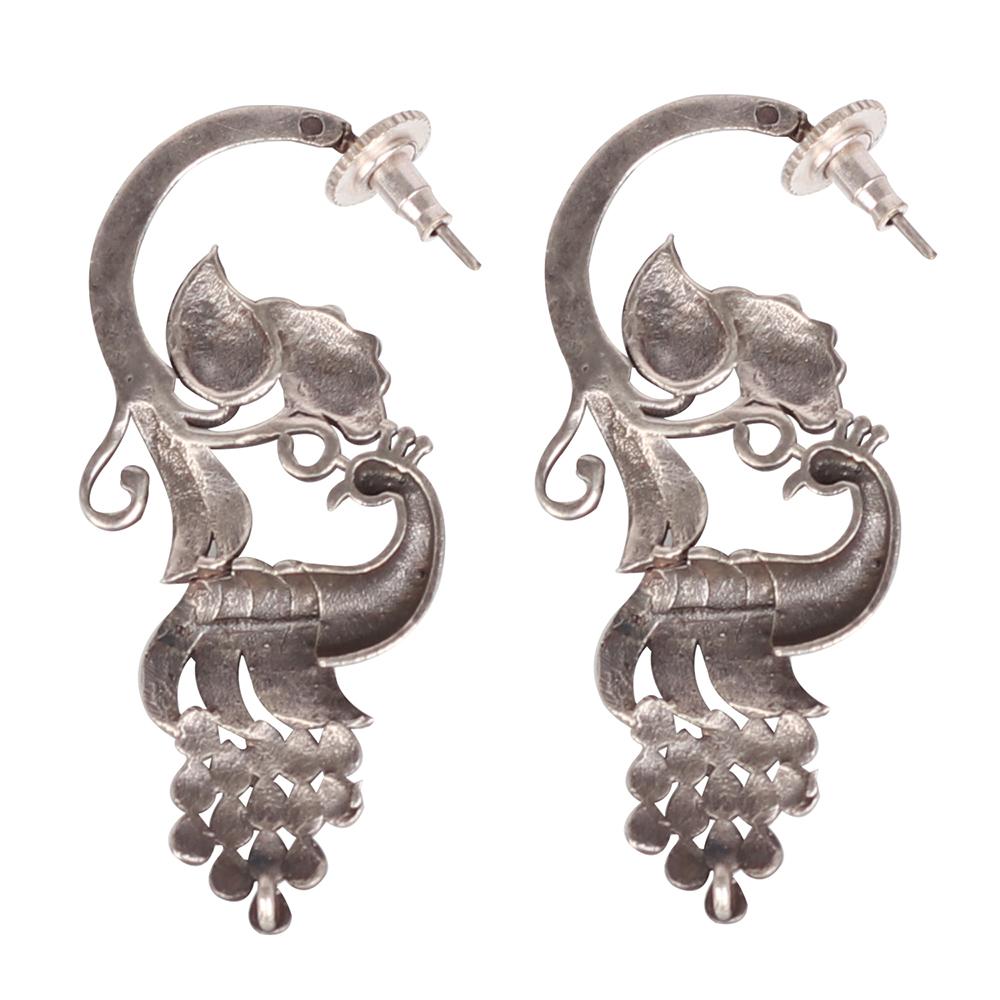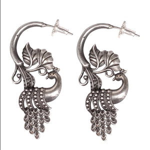 Add an elegant note to your occasion wear ensembles with these exquisite statement earrings. Handcrafted in german silver and with oxidized silver plating, these delicate and light weight stunners pair well with your Kurtas, Sarees or even add a pop of color to your white shirt & denim look