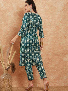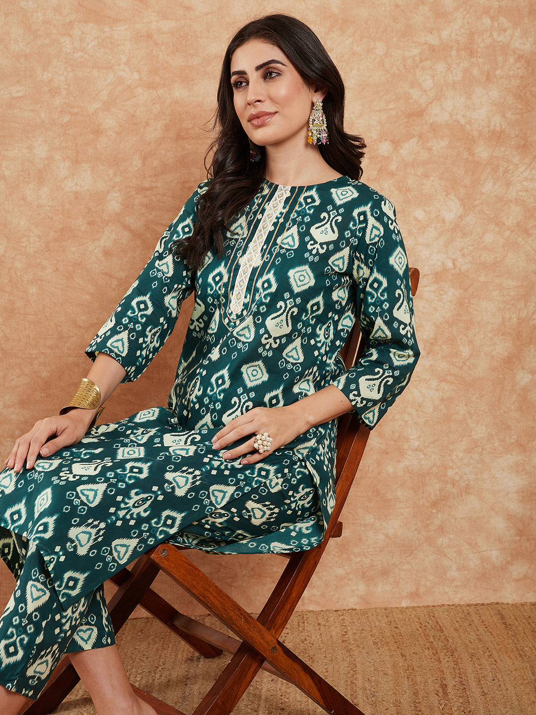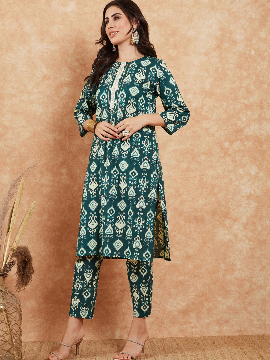 The Set is crafted from best of Indian fabrics. Style it with Oxidised jewelery and juttis and you are good to go for any outing Hand Wash Only Seperately.