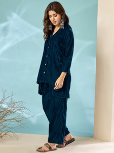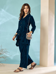 Placeholder Peacock Teal Velvet Blazzer Coord Set - InWeave