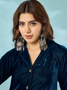 Peacock Teal Velvet Blazzer Coord Set