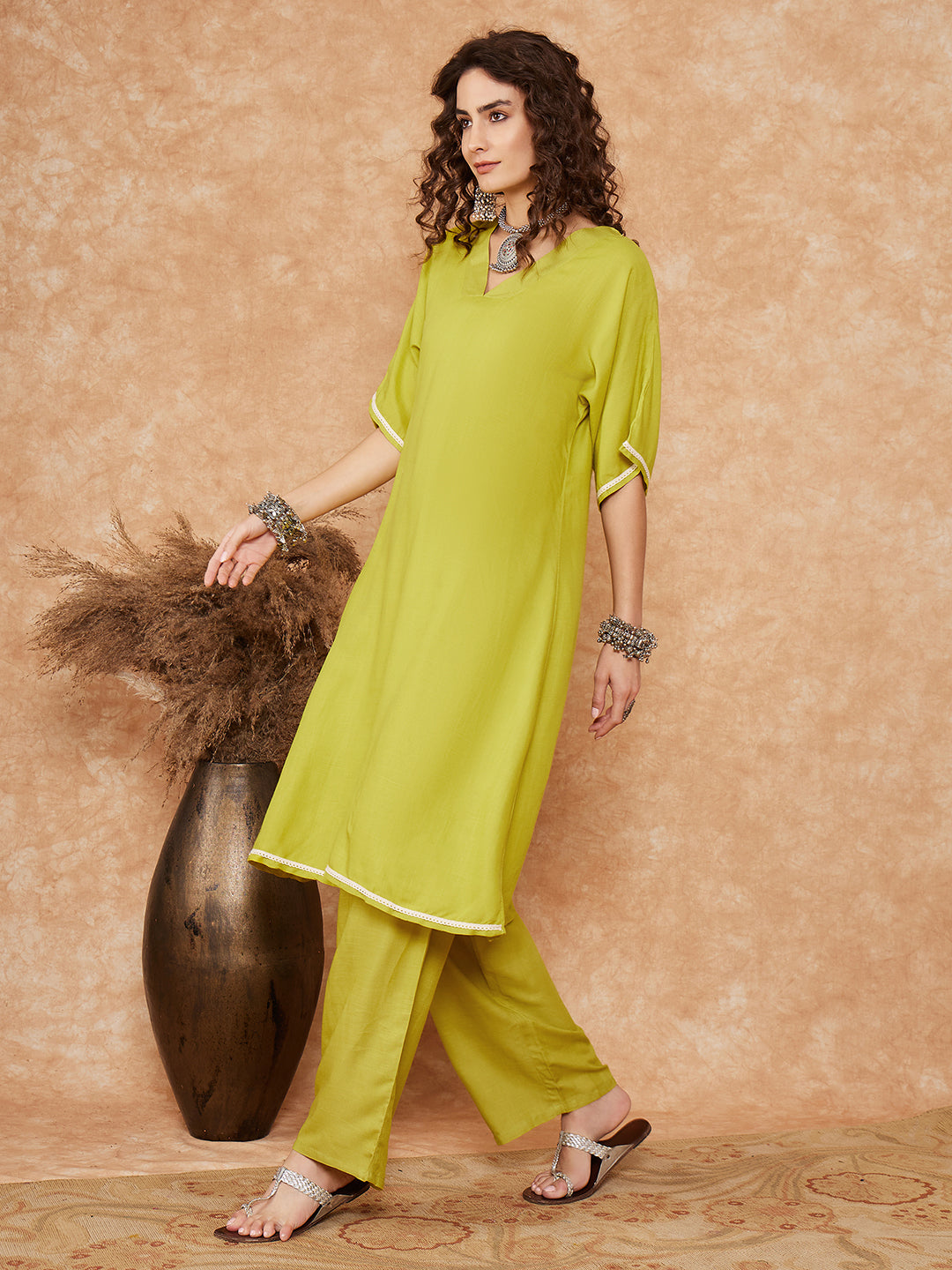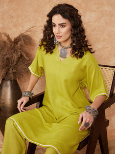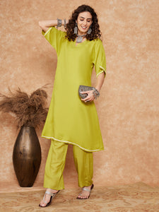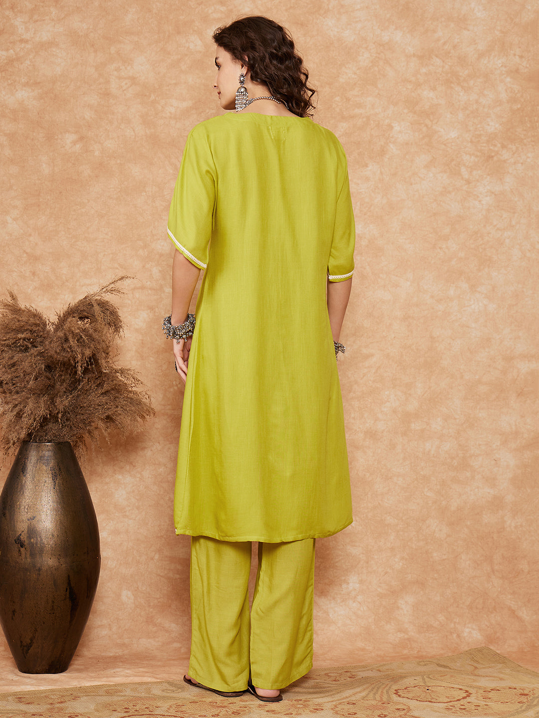 The Set is crafted from best of Indian fabrics. Style it with Oxidised jewelery and juttis and you are good to go for any outing Hand Wash Only Seperately.