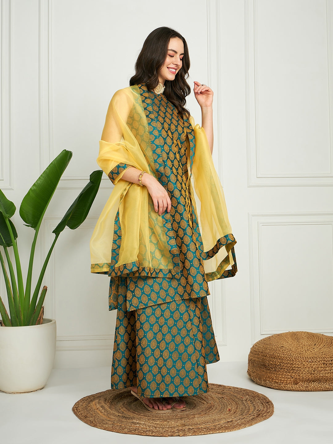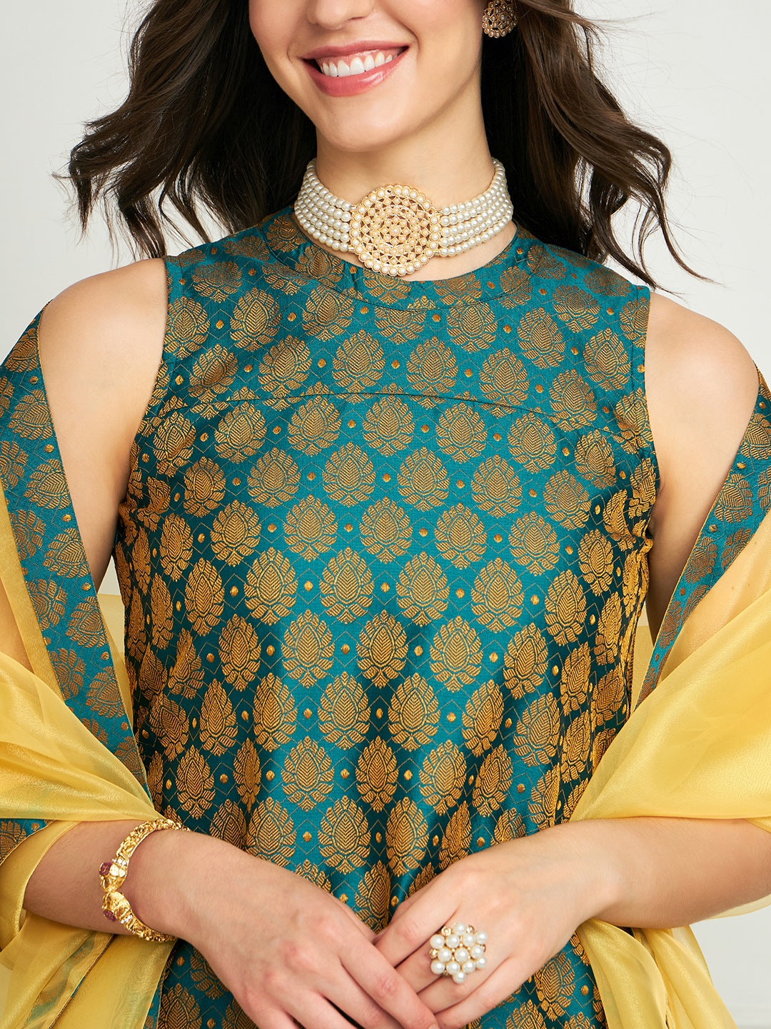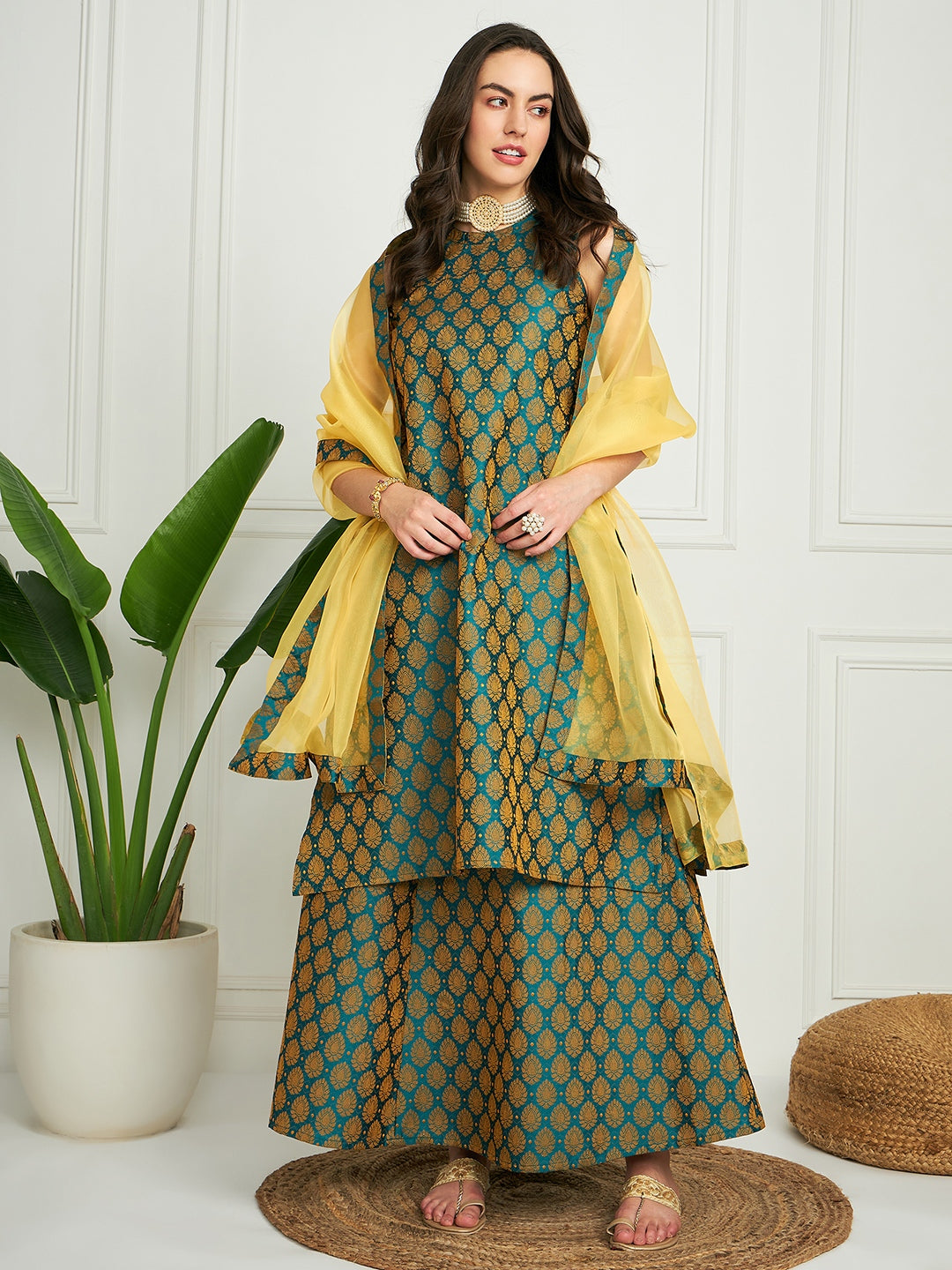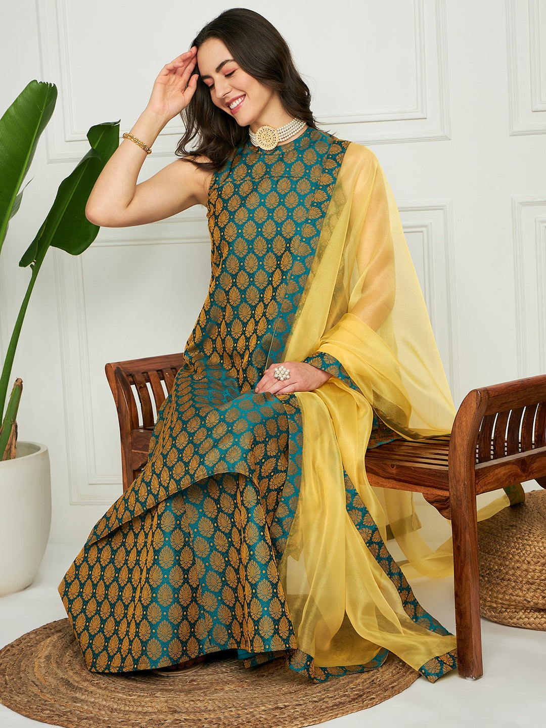 The Set is crafted from best of Indian fabrics. Style it with Oxidised jewelery and juttis and you are good to go for any outing Hand Wash Only Seperately.