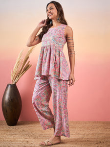 The Set is crafted from best of Indian fabrics. Style it with Oxidised jewelery and juttis and you are good to go for any outing Hand Wash Only Seperately.