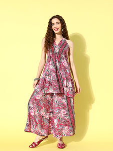 The Kurta set is crafted from best of Indian fabrics. Style it with Oxidised jewelery and juttis and you are good to go for any outing Fabric used : Poly silk. Hand Wash Only Seperately.