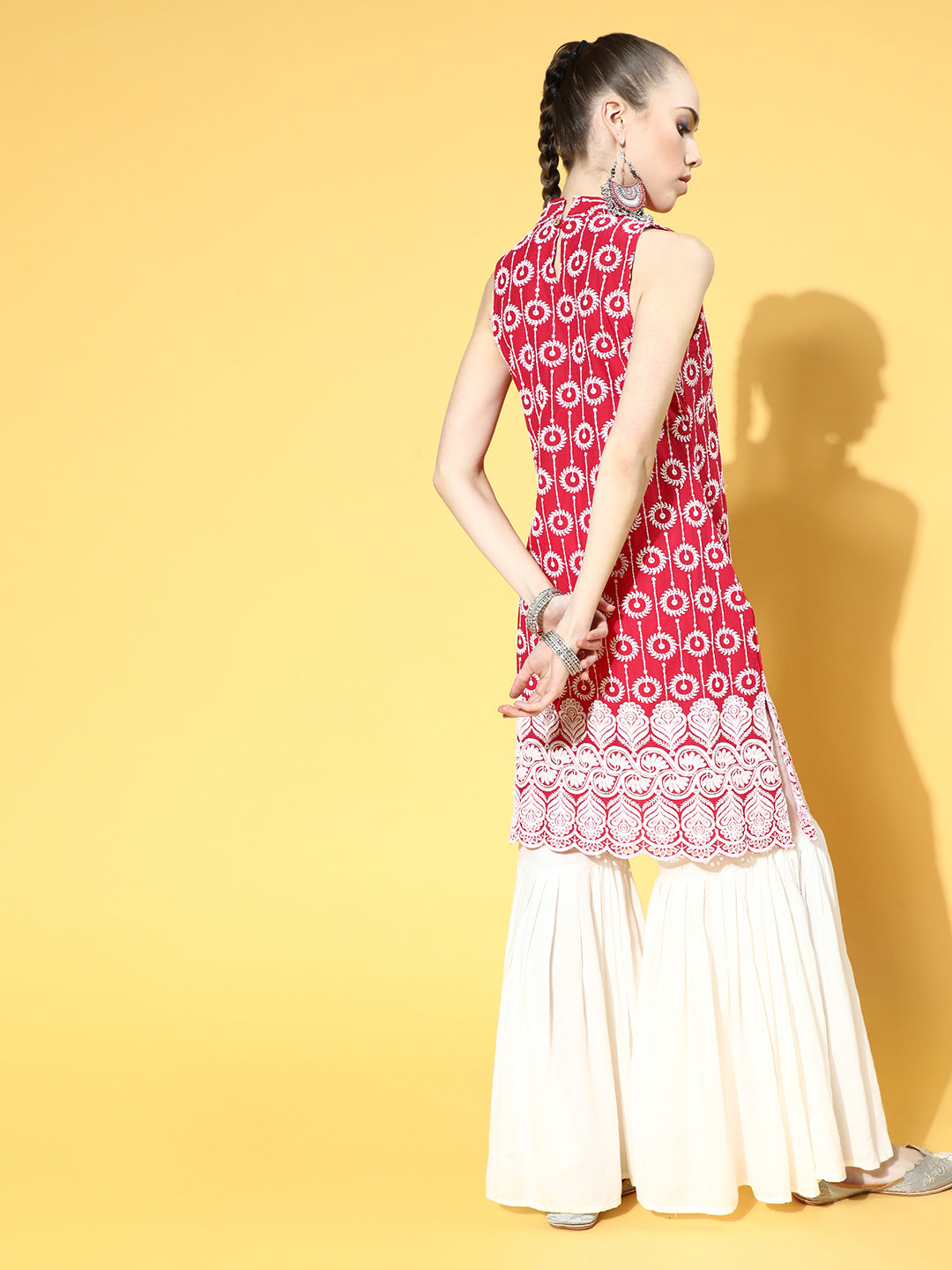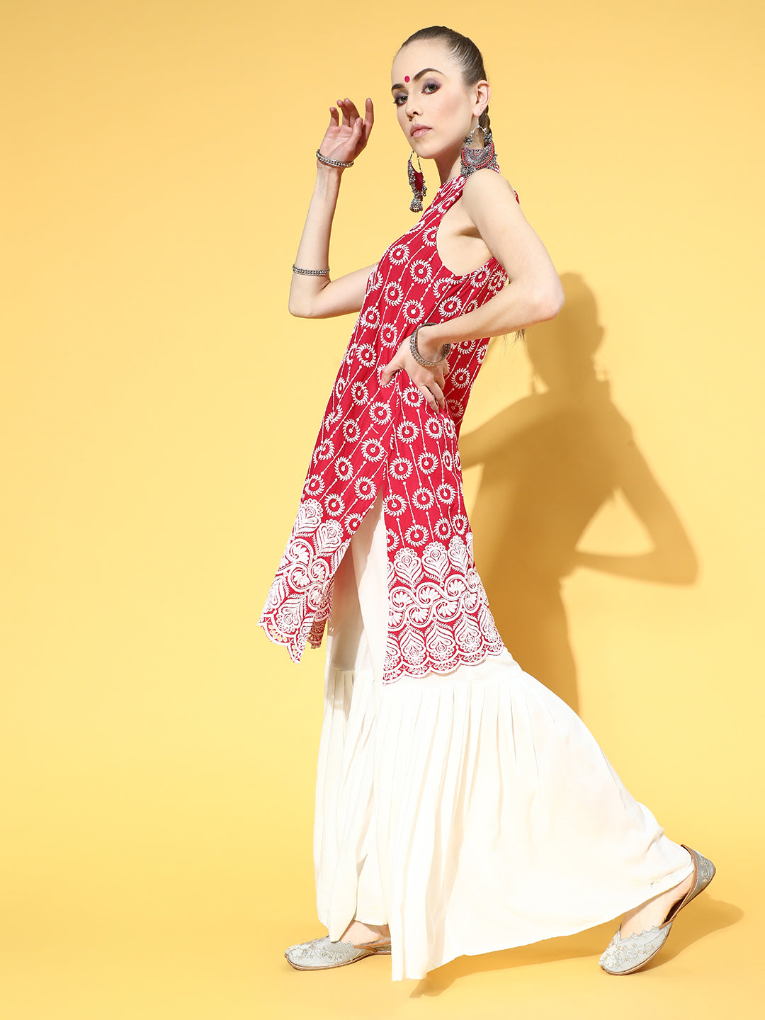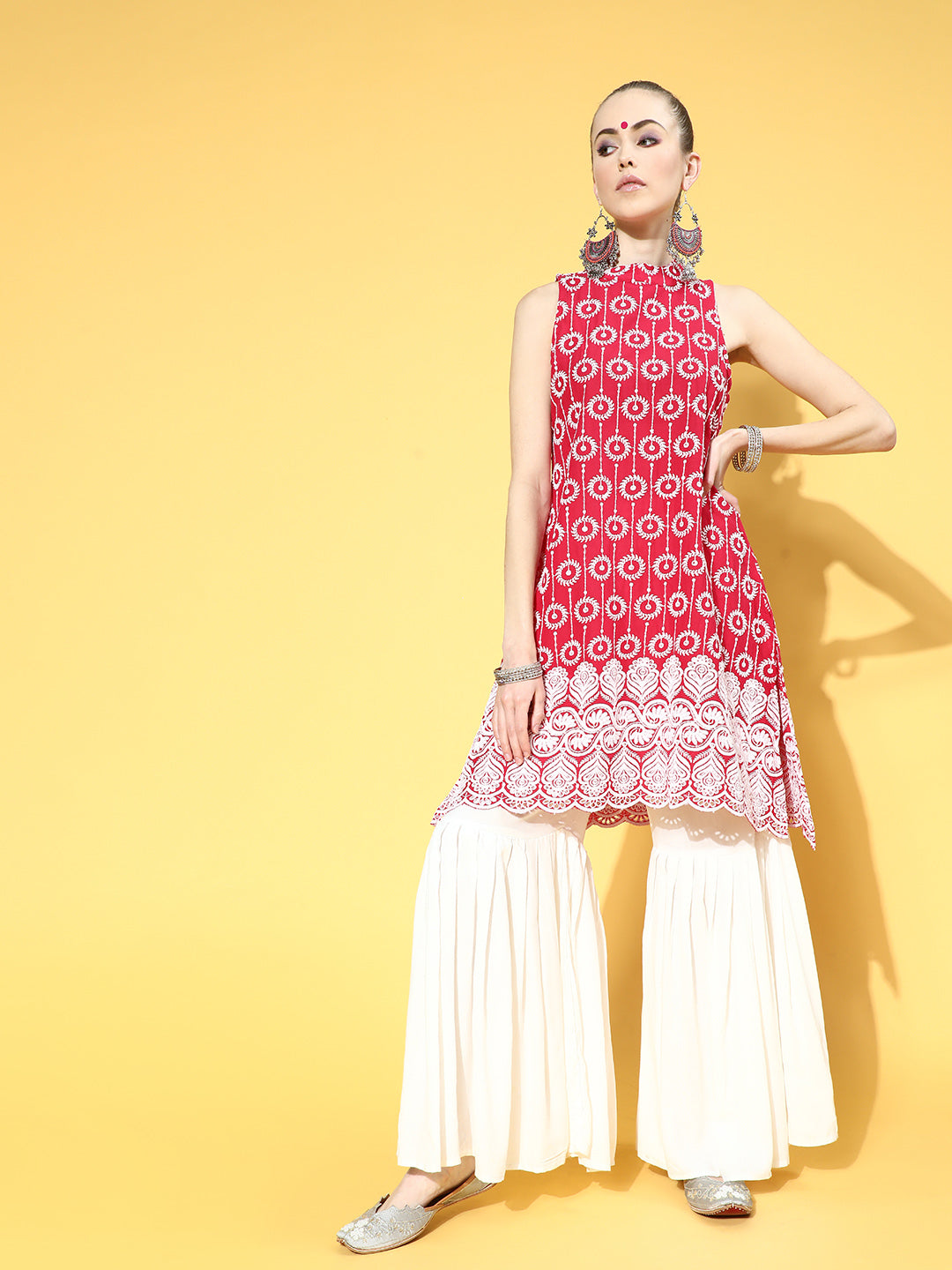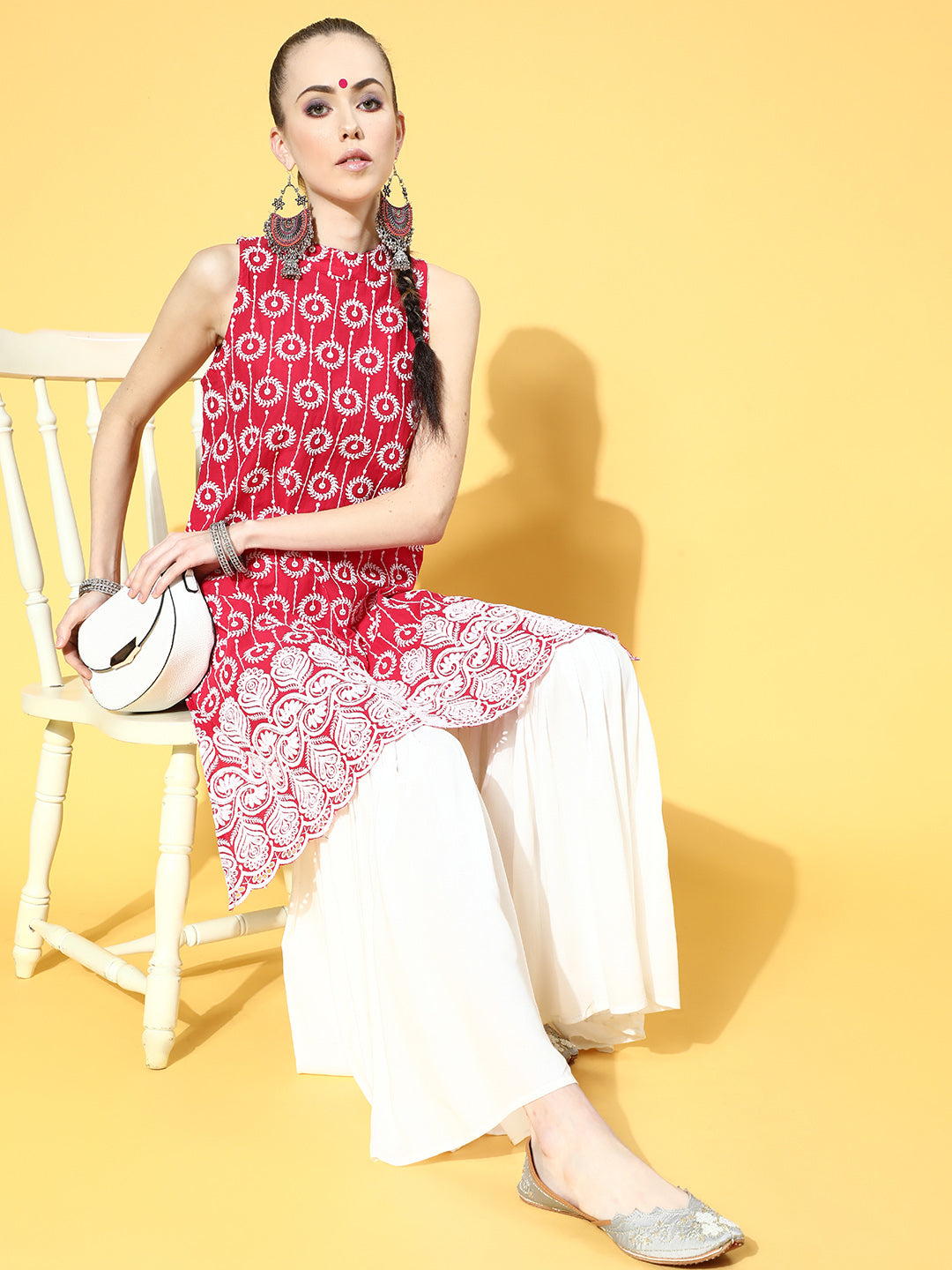 The Set is crafted from best of Indian fabrics. Style it with Oxidised jewelery and juttis and you are good to go for any outing Fabric used for Upper : Cotton. Fabric used for Lower : Rayon. Hand Wash Only Seperately.