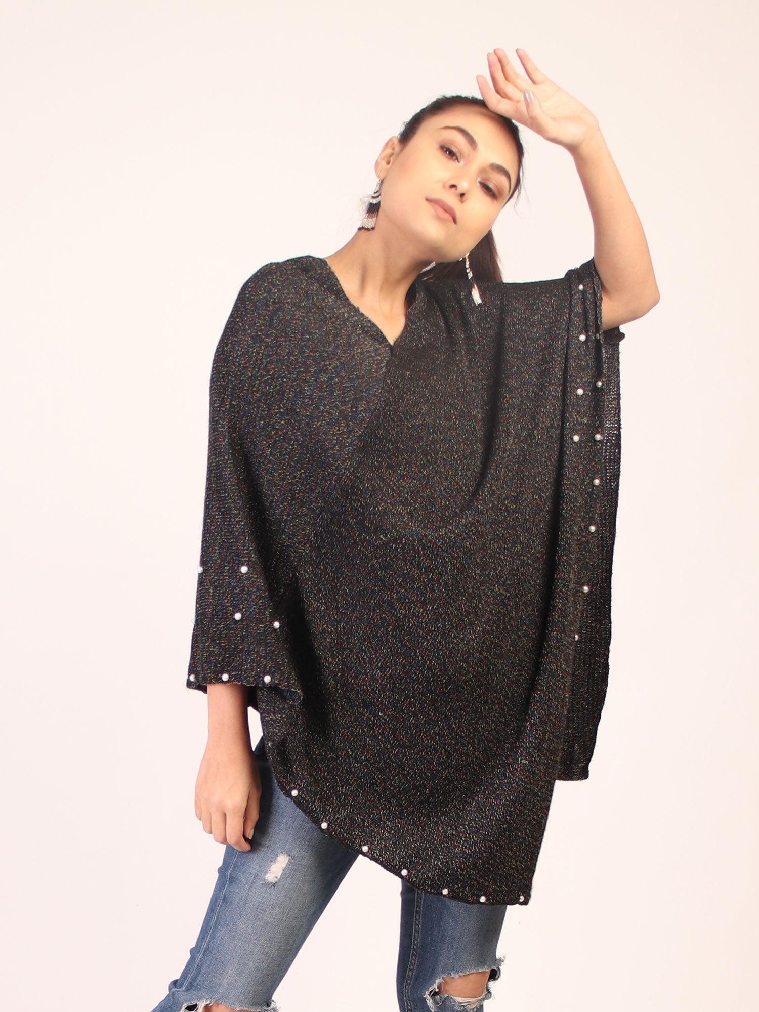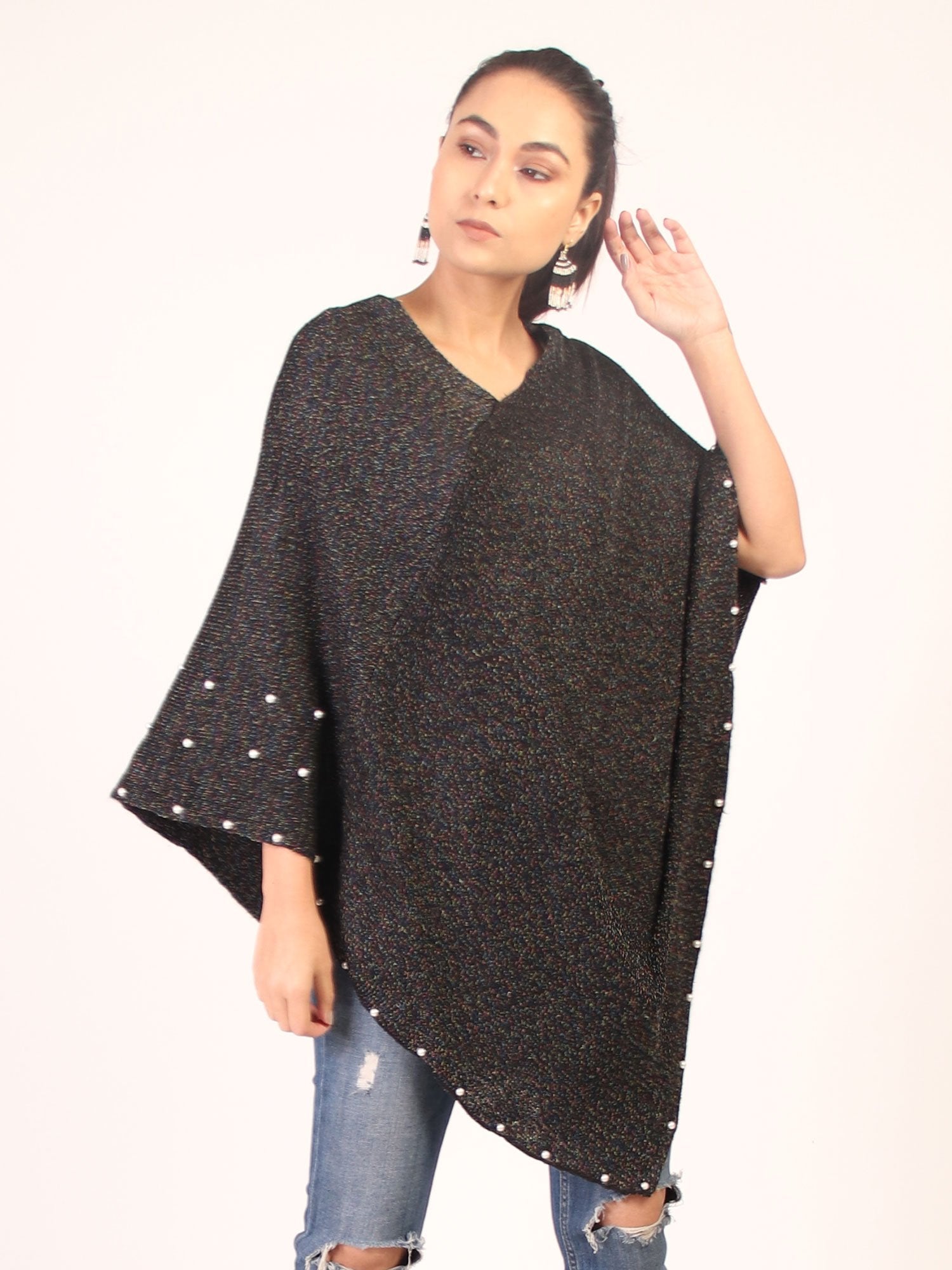 Our pearl embellished ponchos are a style statement in themselves.Sure to keep you warm and at the same time sure to give you the style edge this winter season