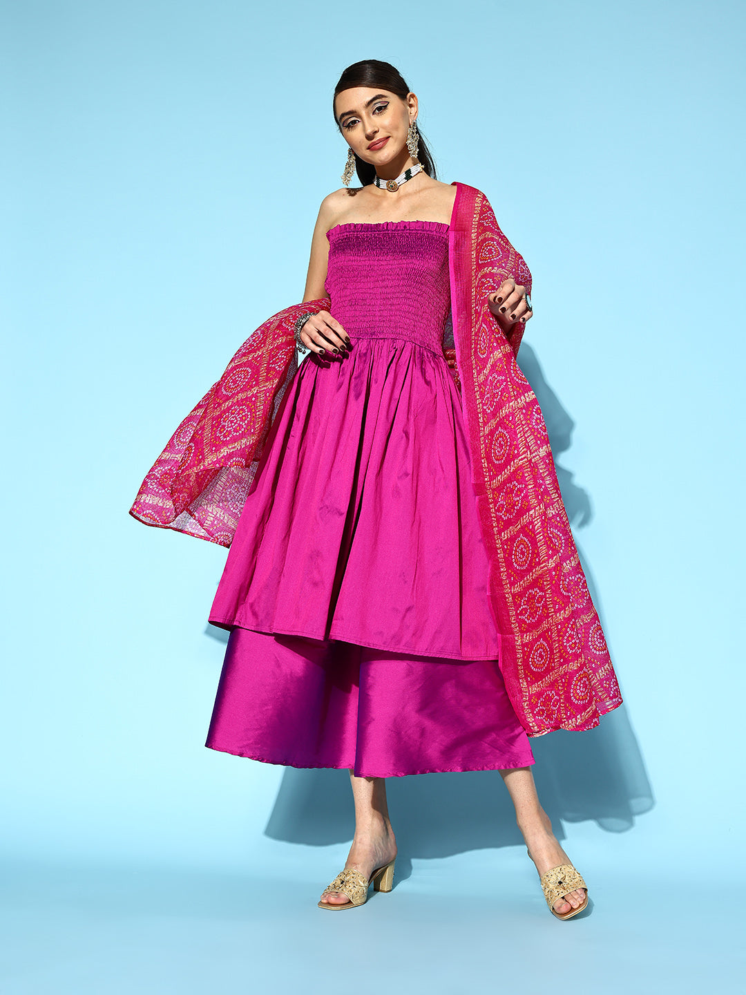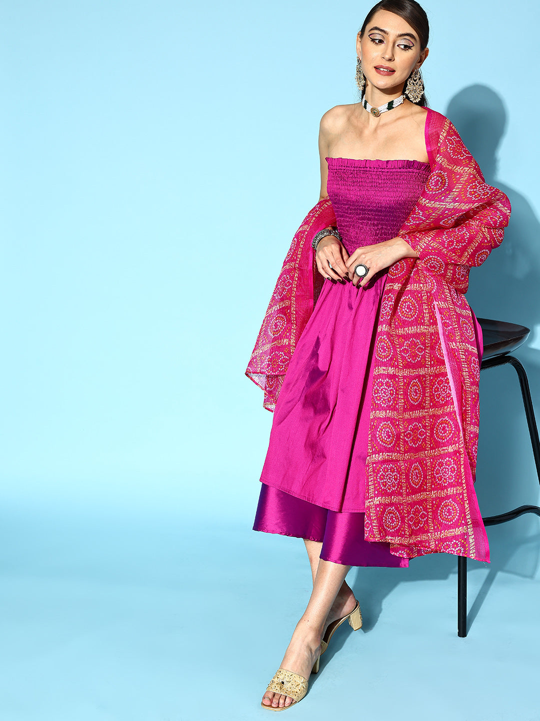 The Set is crafted from best of Indian fabrics. Style it with Oxidised jewelery and juttis and you are good to go for any outing Hand Wash Only Seperately.