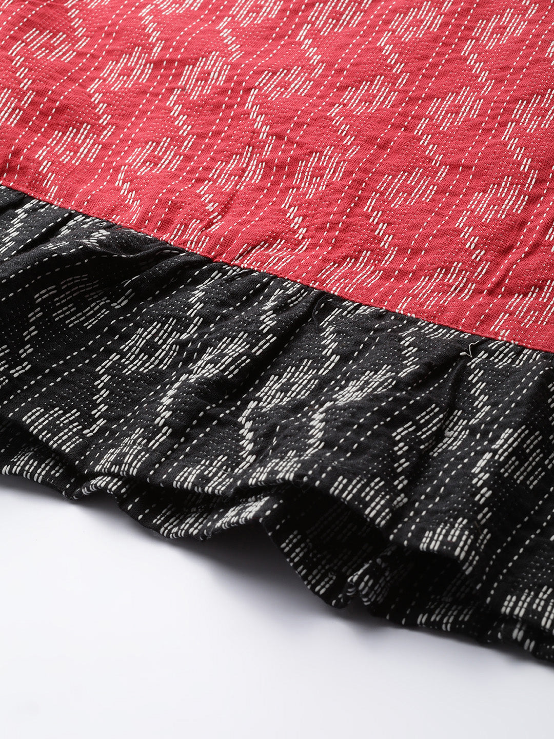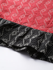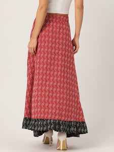 Sway your way to the fashion world by wearing this red and black skirt to the event. Club it with your favourite tee and stole to finish off the look.
