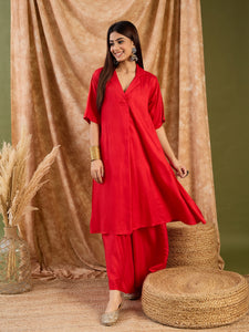 Red Collar Neck Kurta Set