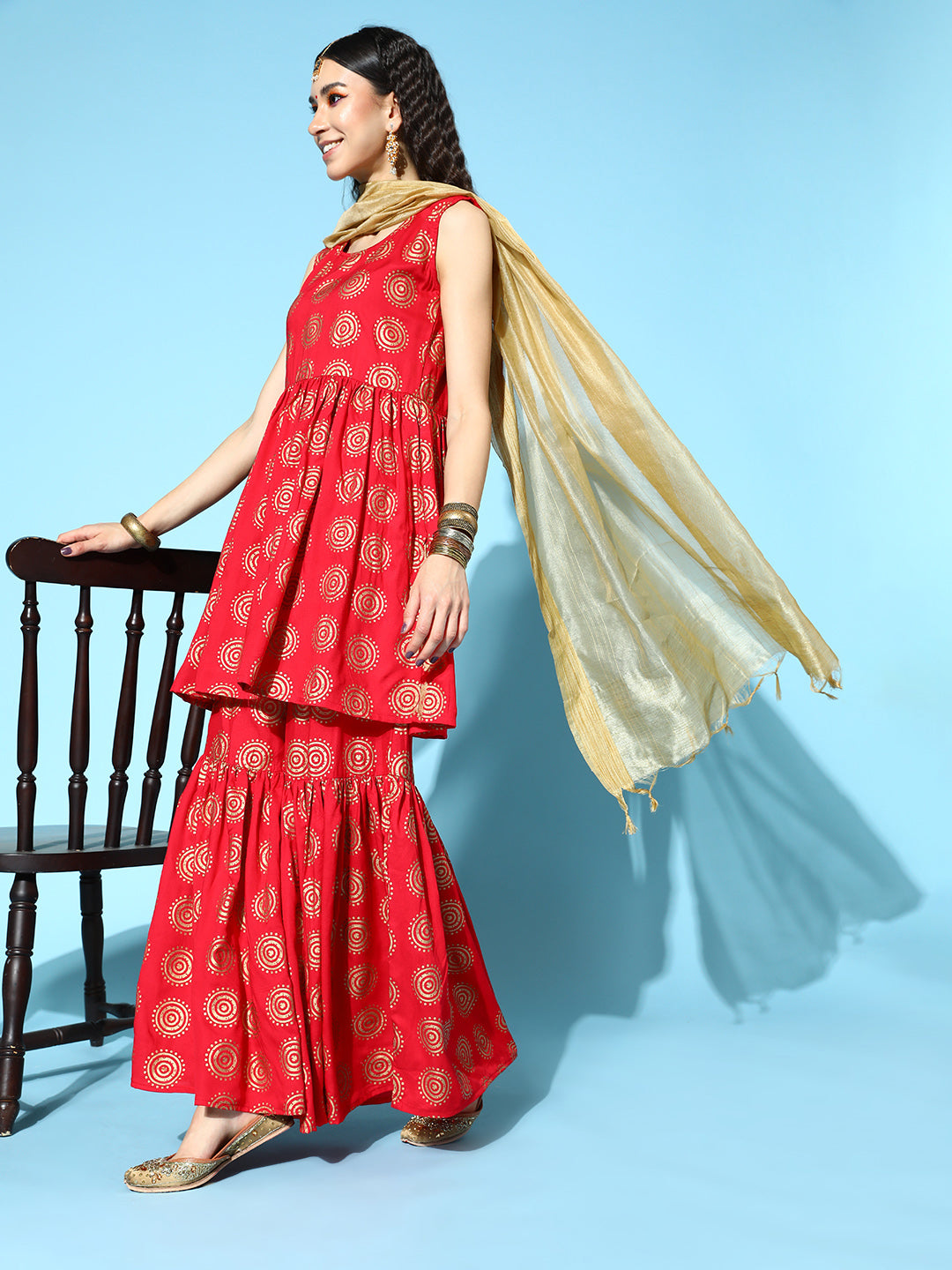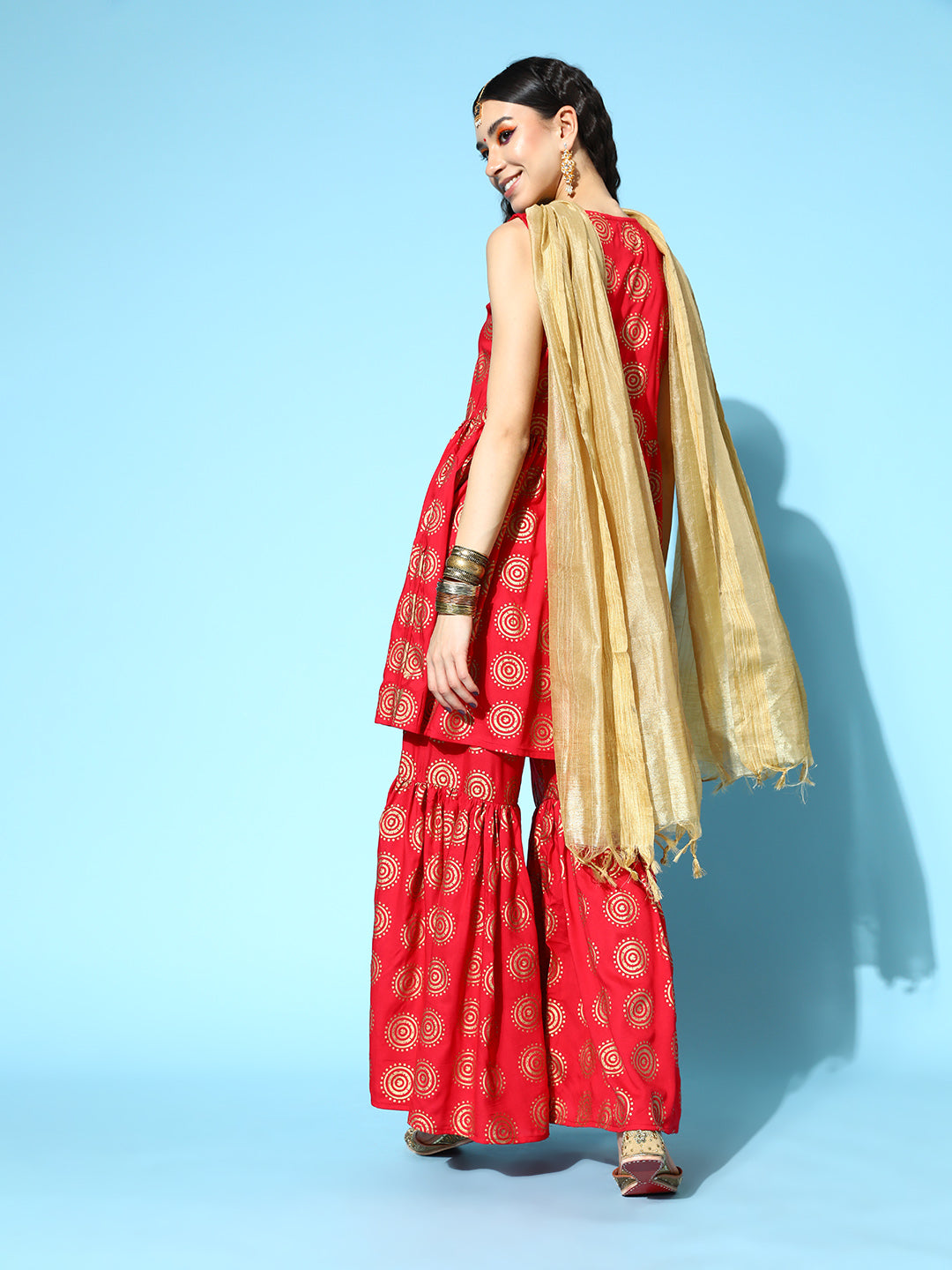 The Set is crafted from best of Indian fabrics. Style it with Oxidised jewelery and juttis and you are good to go for any outing Hand Wash Only Seperately.