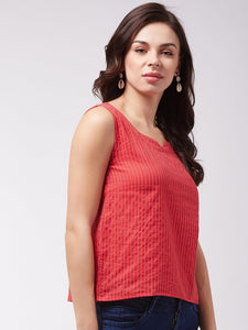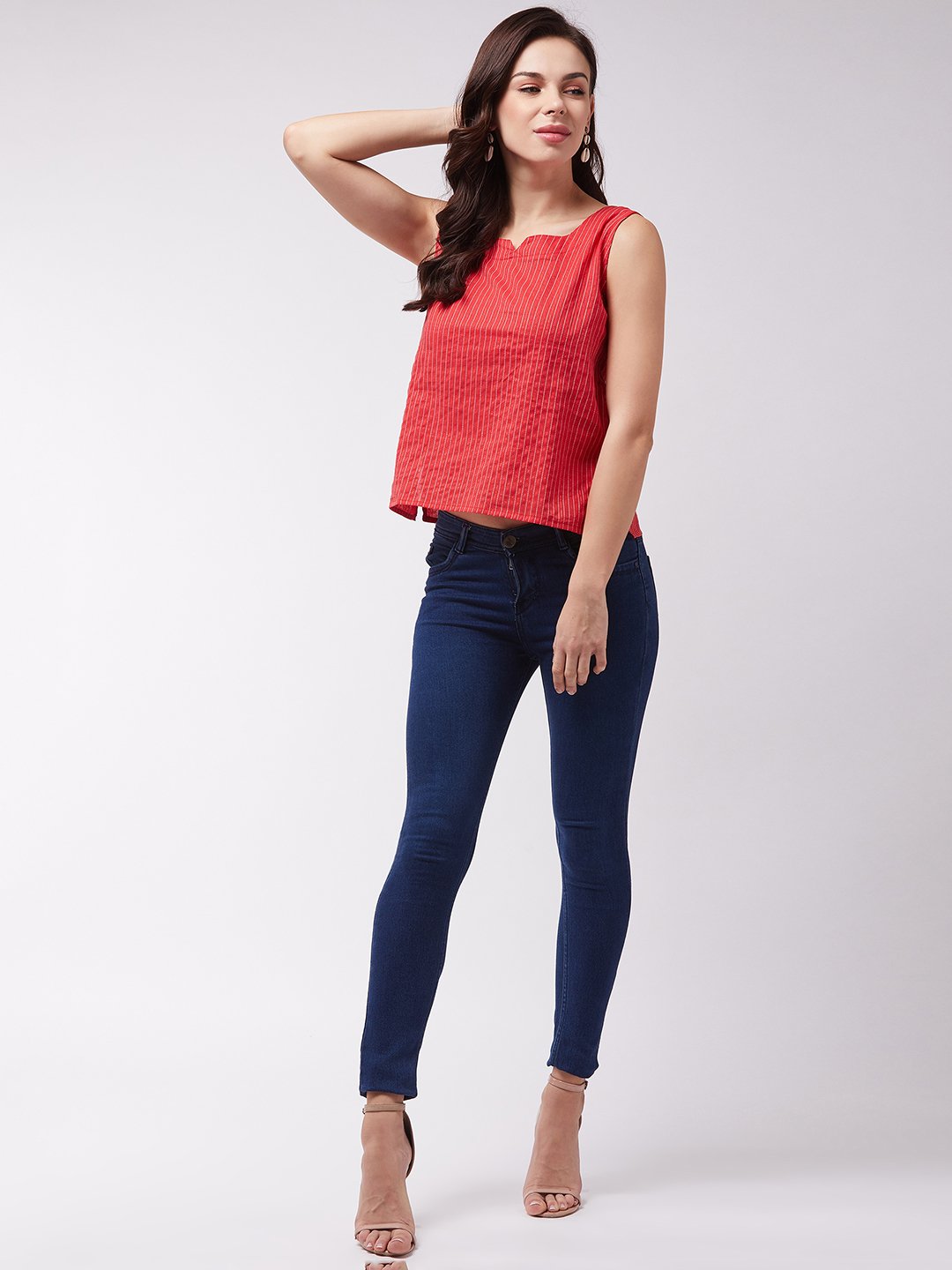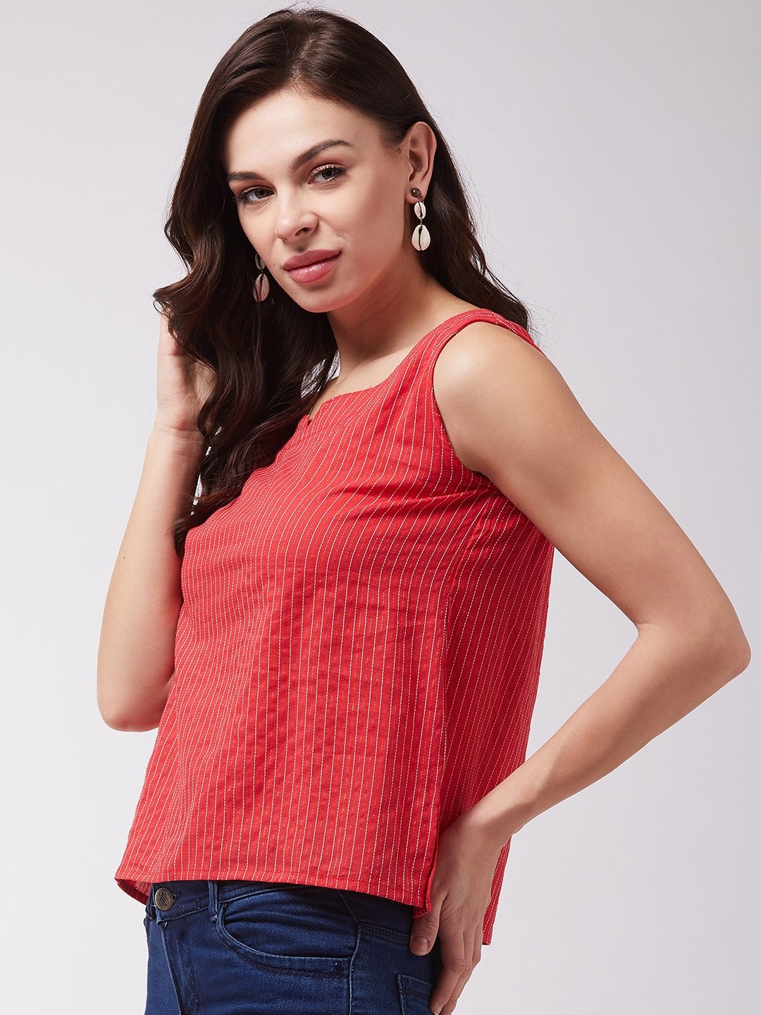 Look ravishing like a full moon in this festive season by adorning this red kantha top. Wear this sleeveless top with denim jeans or floral skirt.