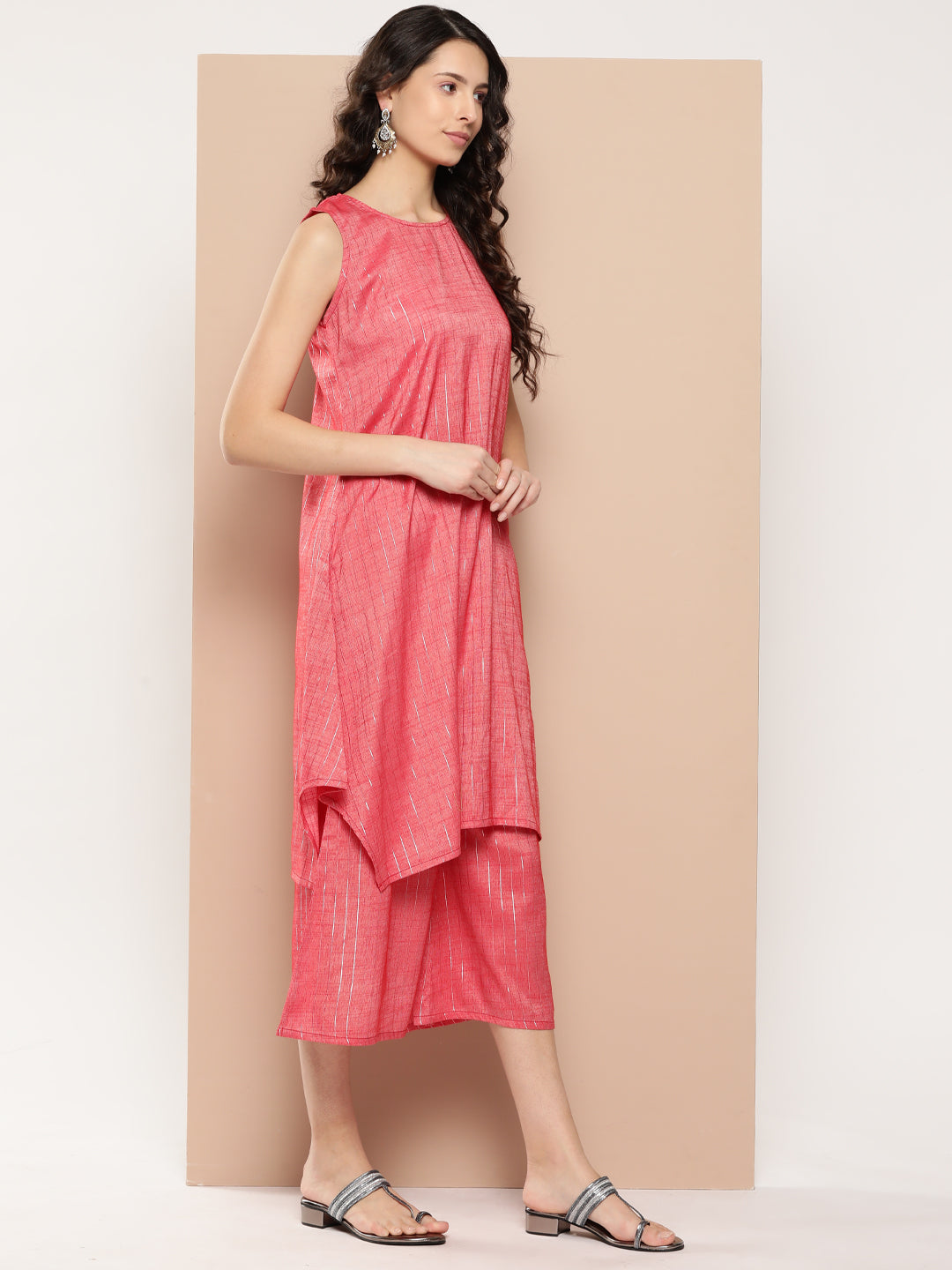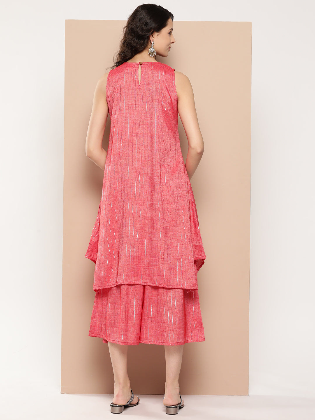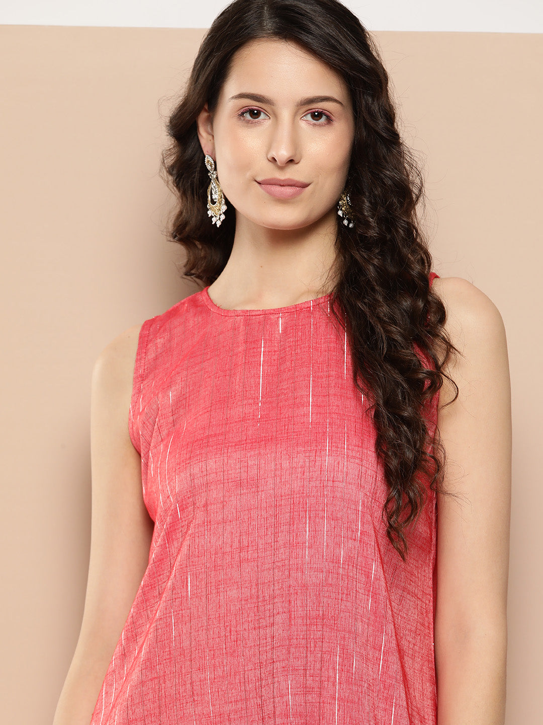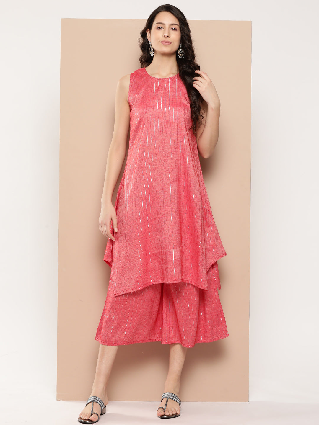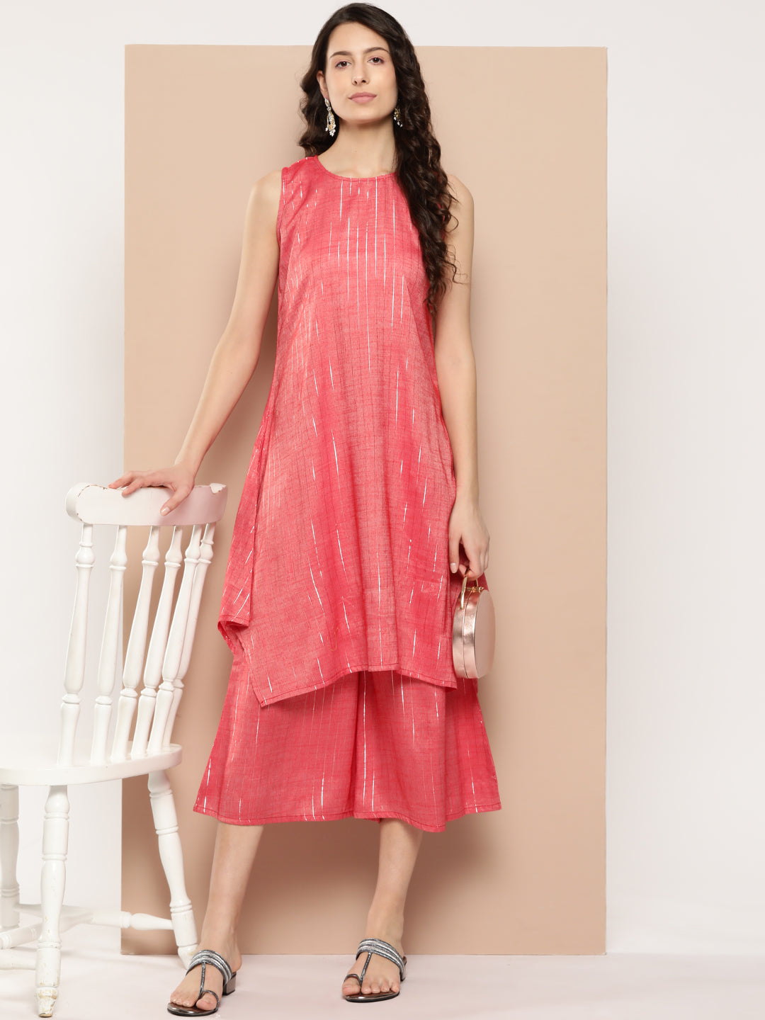 Placeholder Red Lurex Short Pallazo Kurta Set - InWeave