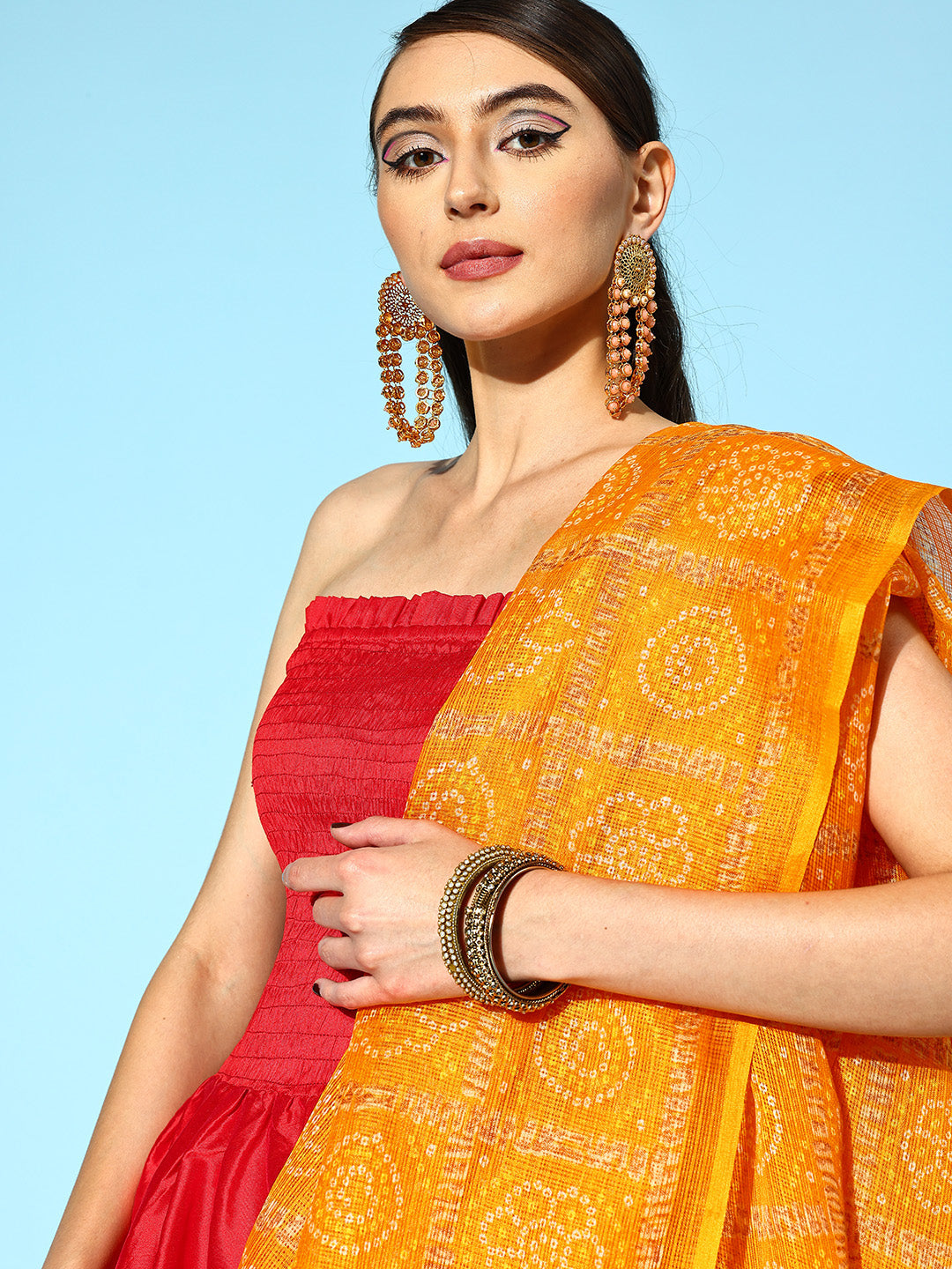Dupatta, if any, has a length of 225 cms / 2.25 m / 88.5 inches. Width is 107 cms / 42 inches