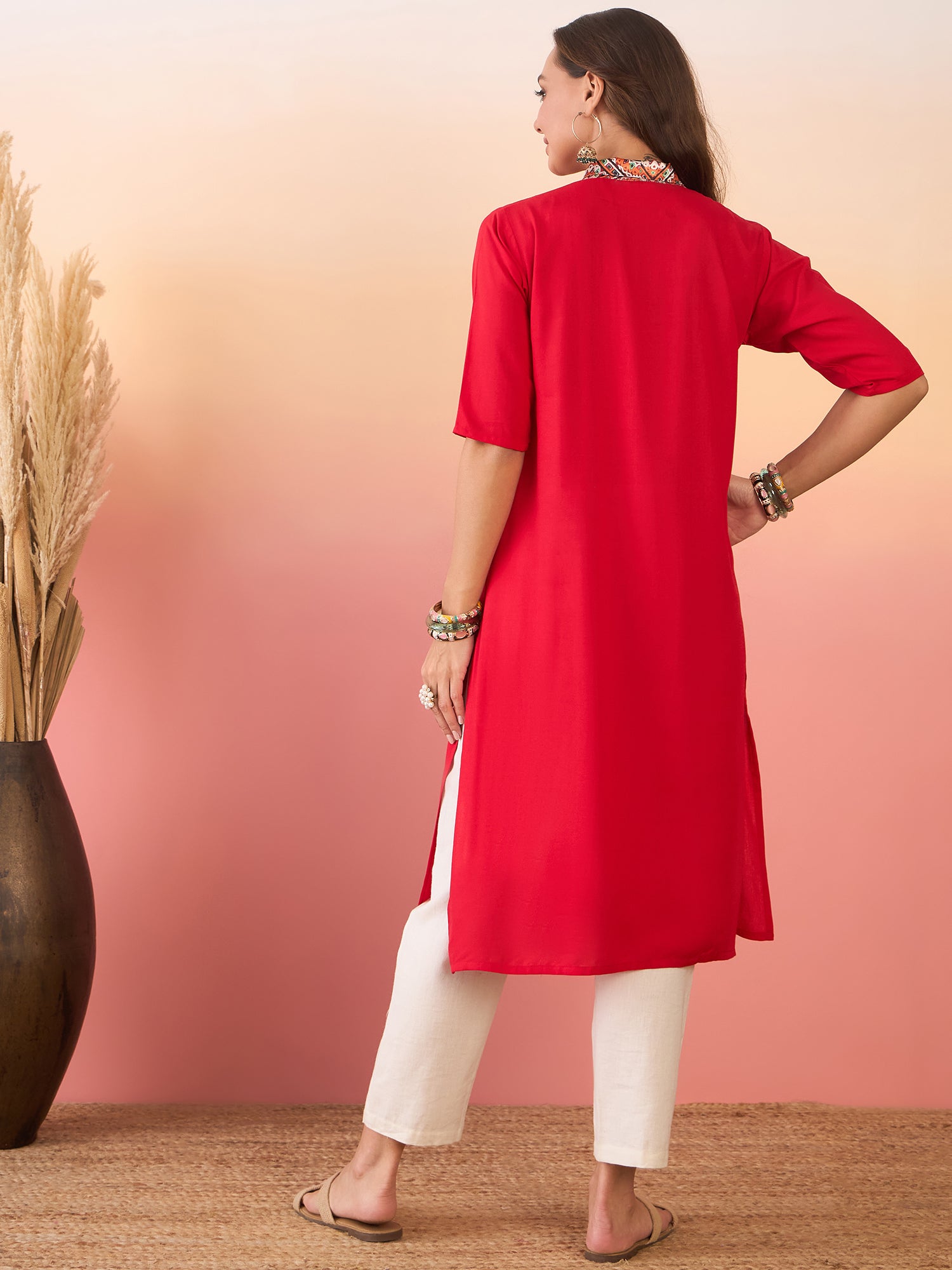 The Kurta is crafted from best of Indian fabrics. Style it with Oxidised jewelery and juttis and you are good to go for any outing Hand Wash Only Seperately.
