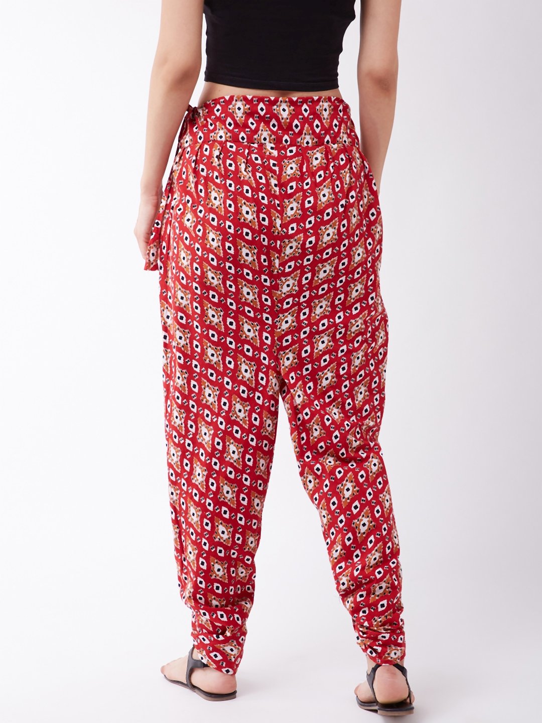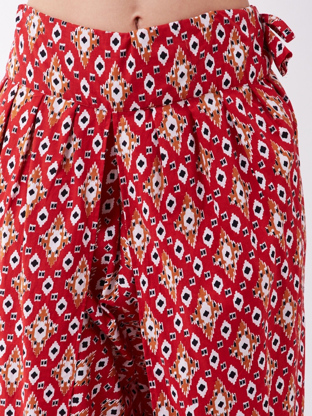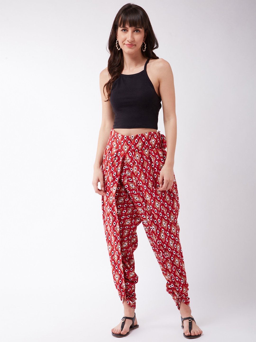 In case you want to flaunt a casual look, then team this red Patola dhoti up with your favourite long or short kurtis. Match the look with silver jewellery.