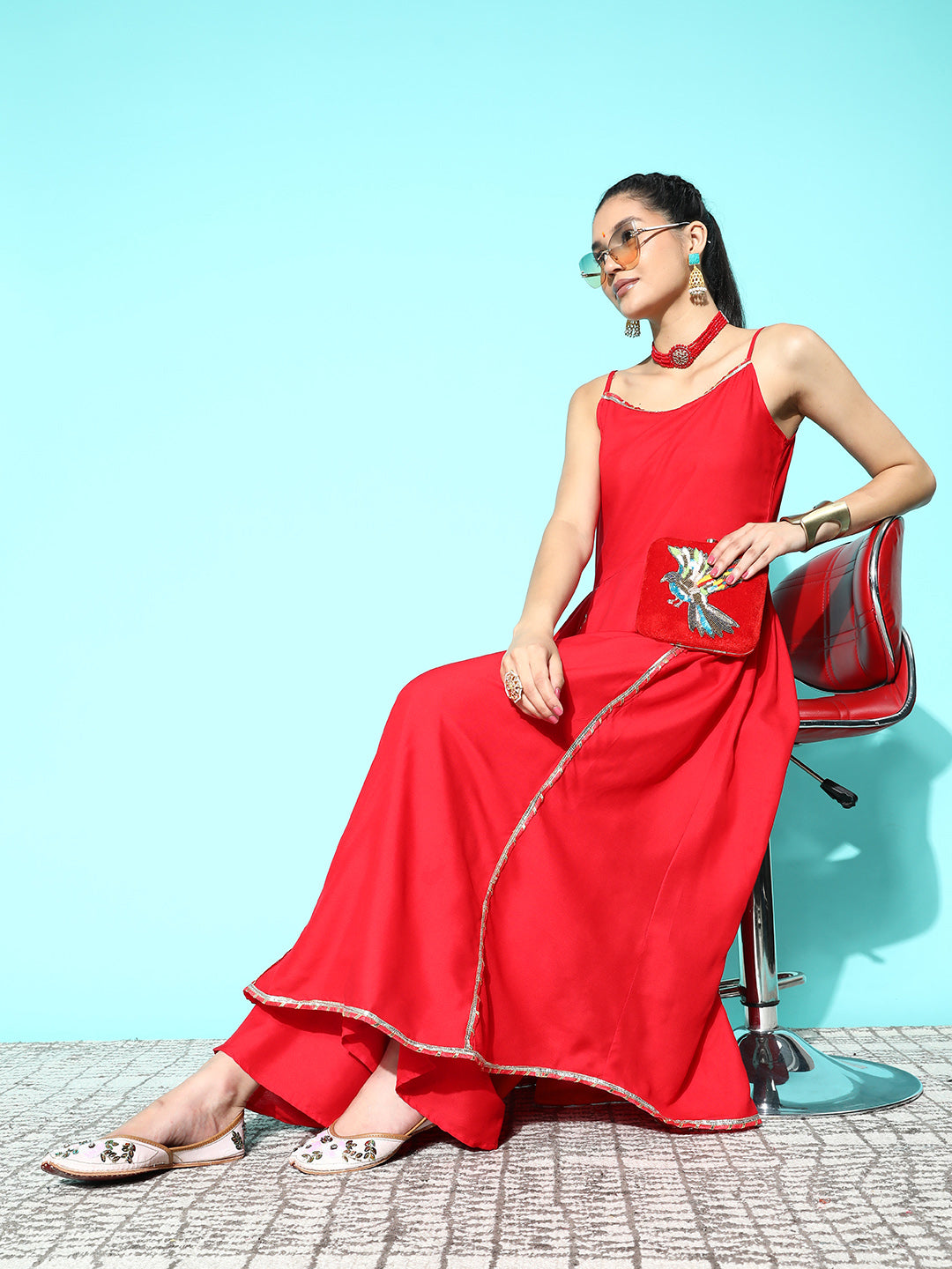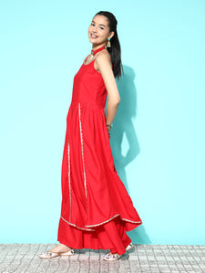 The Set is crafted from best of Indian fabrics. Style it with Oxidised jewelery and juttis and you are good to go for any outing Hand Wash Only Seperately.