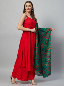 The Set is crafted from best of Indian fabrics. Style it with Oxidised jewelery and juttis and you are good to go for any outing Hand Wash Only Seperately.