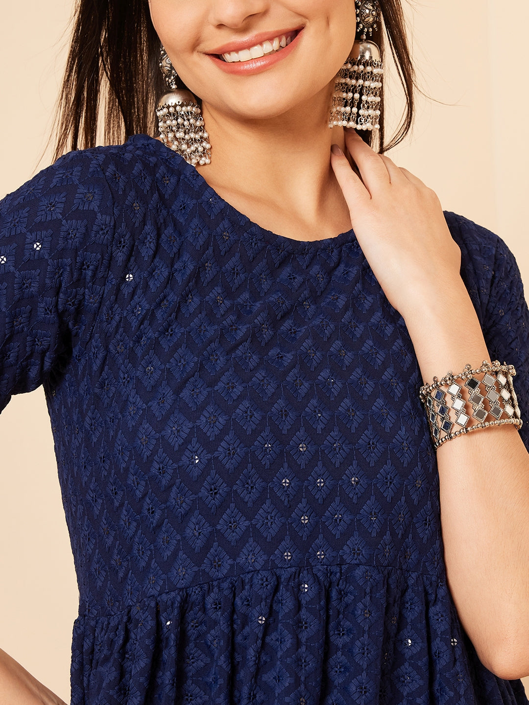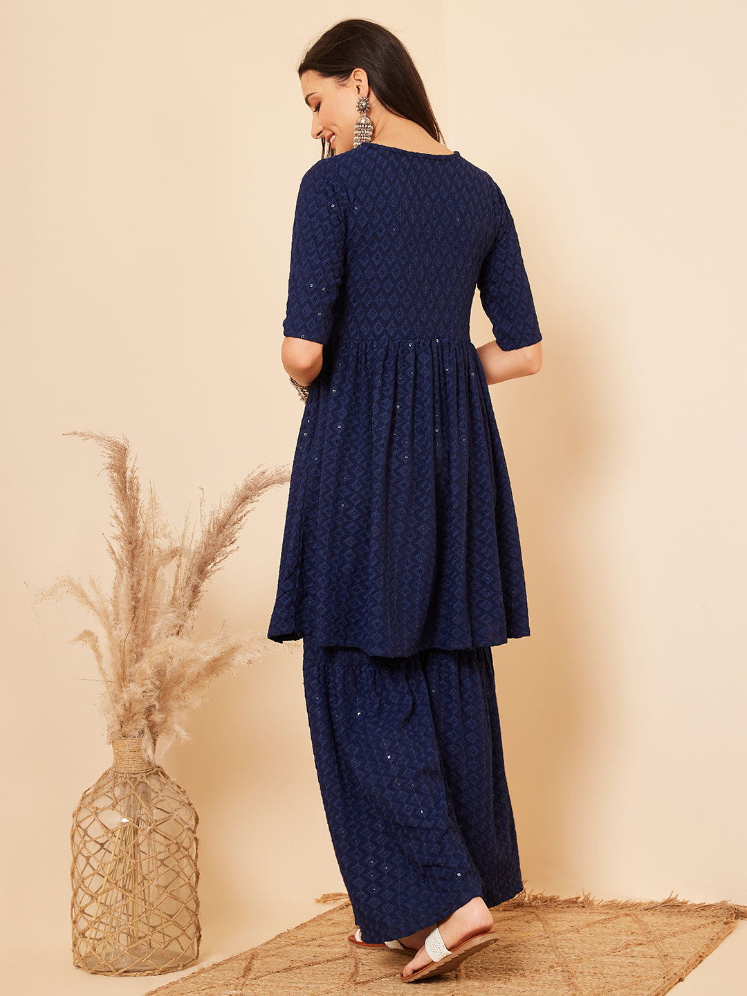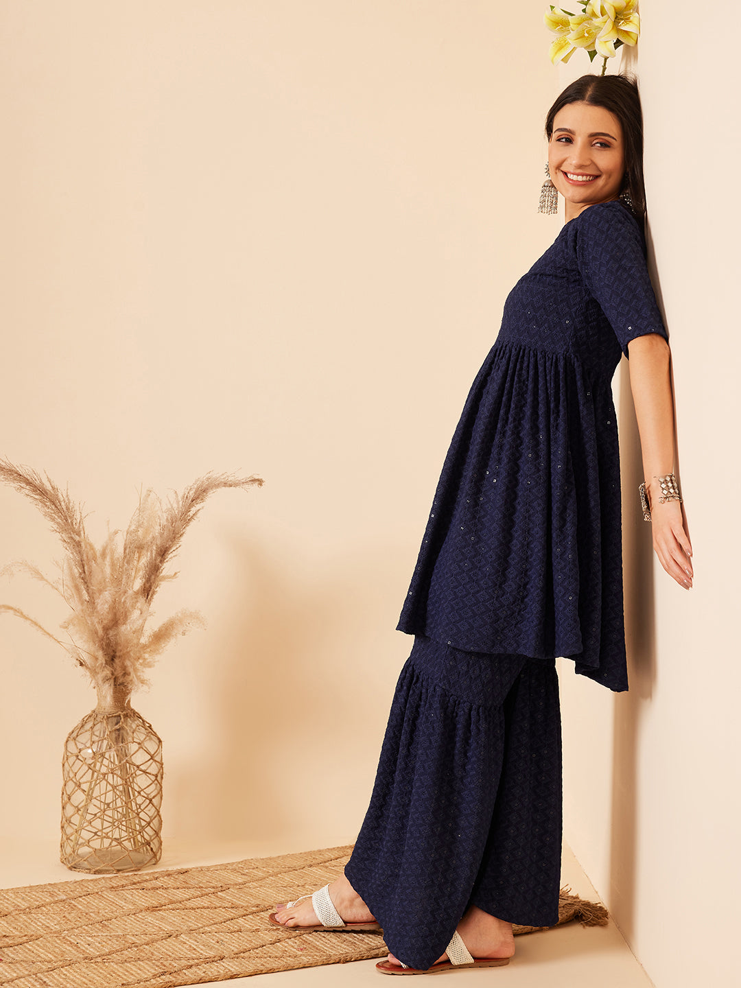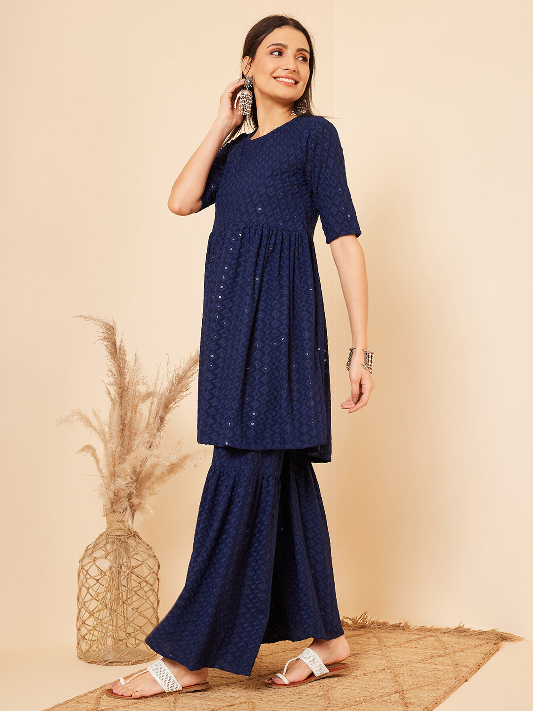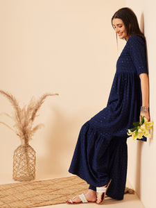 The Set is crafted from best of Indian fabrics. Style it with Oxidised jewelery and juttis and you are good to go for any outing Hand Wash Only Seperately.