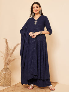 Dupatta, if any, has a length of 225 cms / 2.25 m / 88.5 inches. Width is 107 cms / 42 inches