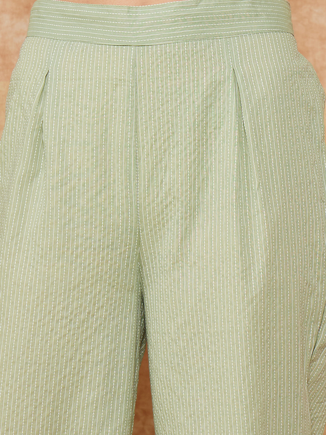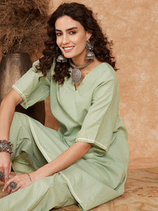 Placeholder Sage Green Kantha Lace Wrok Kimono Sleeve Kurta Set - InWeave