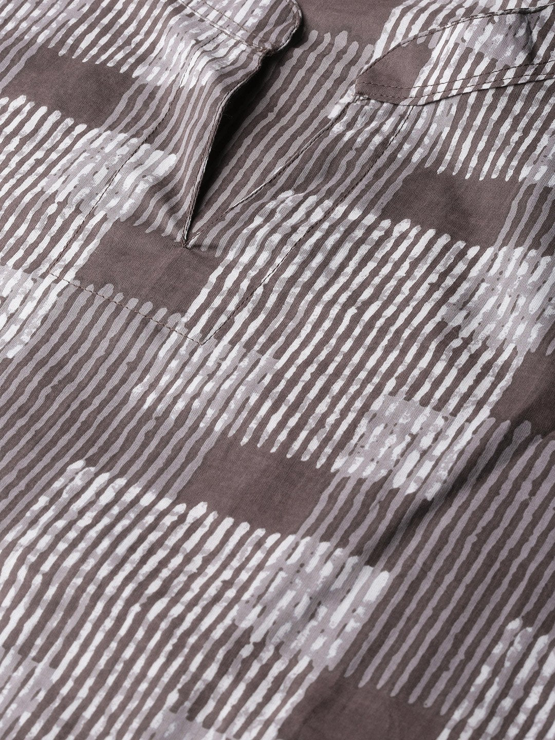 Time to display your love for ethnic sartorial pieces by wearing this brown short tunic. This can be teamed with chikankari dhoti or palazzos.