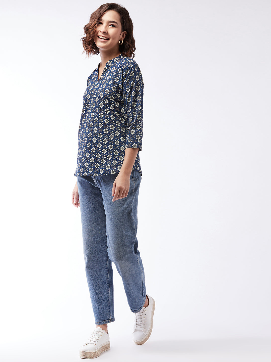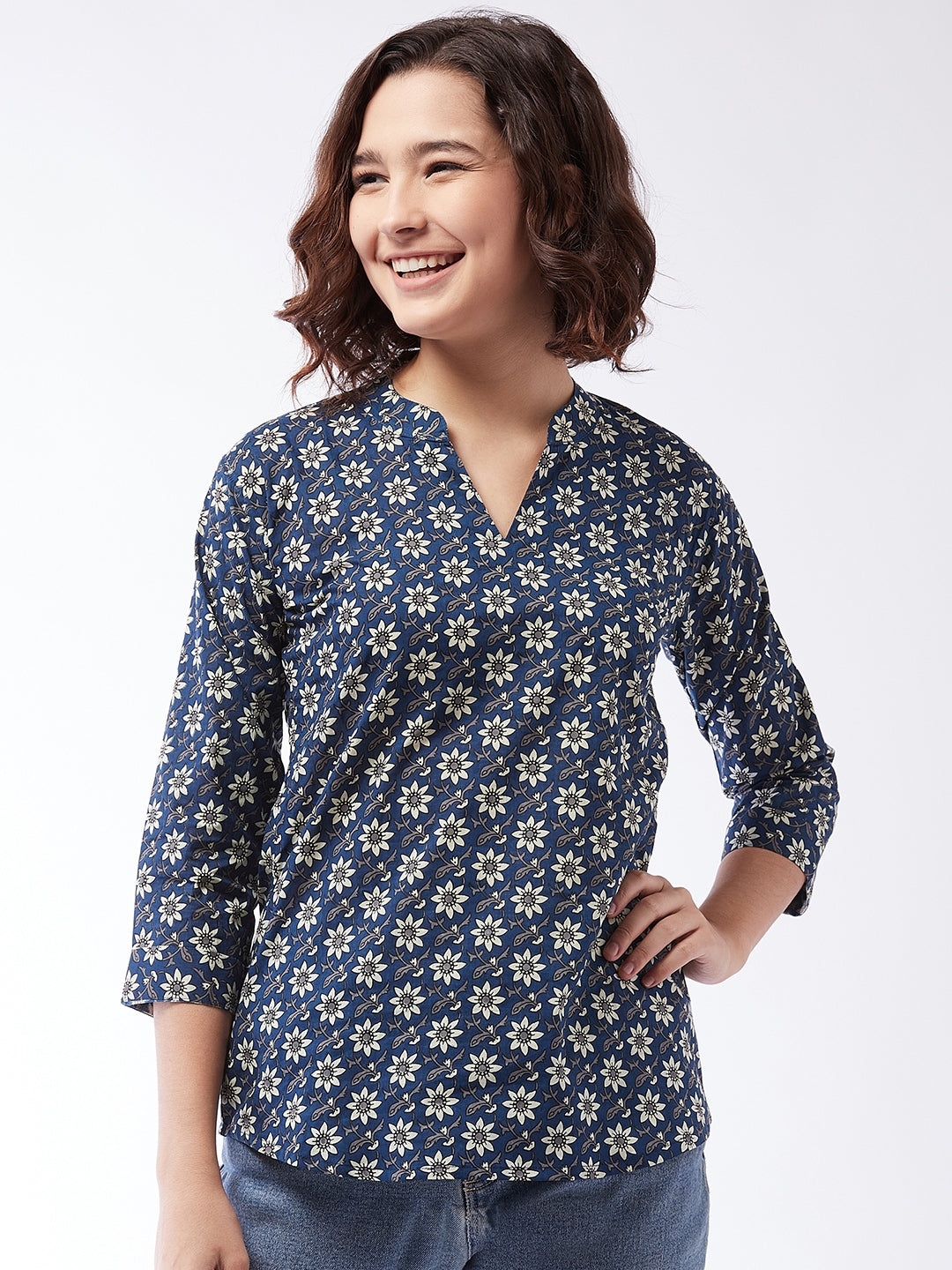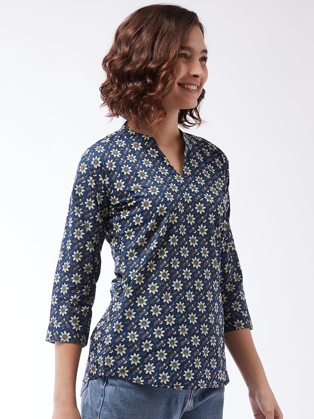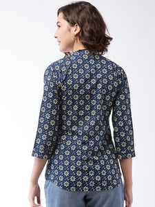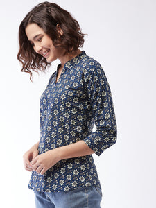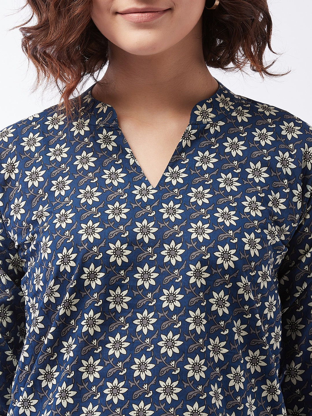 Rock your look like a diva by wearing this pretty blue coloured short kurta top from our designer couture. You can pair this comfy pure cotton top with leggings or cropped pants and sandals.