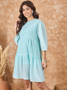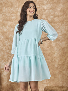 Sky Blue Chiffon Short Dress